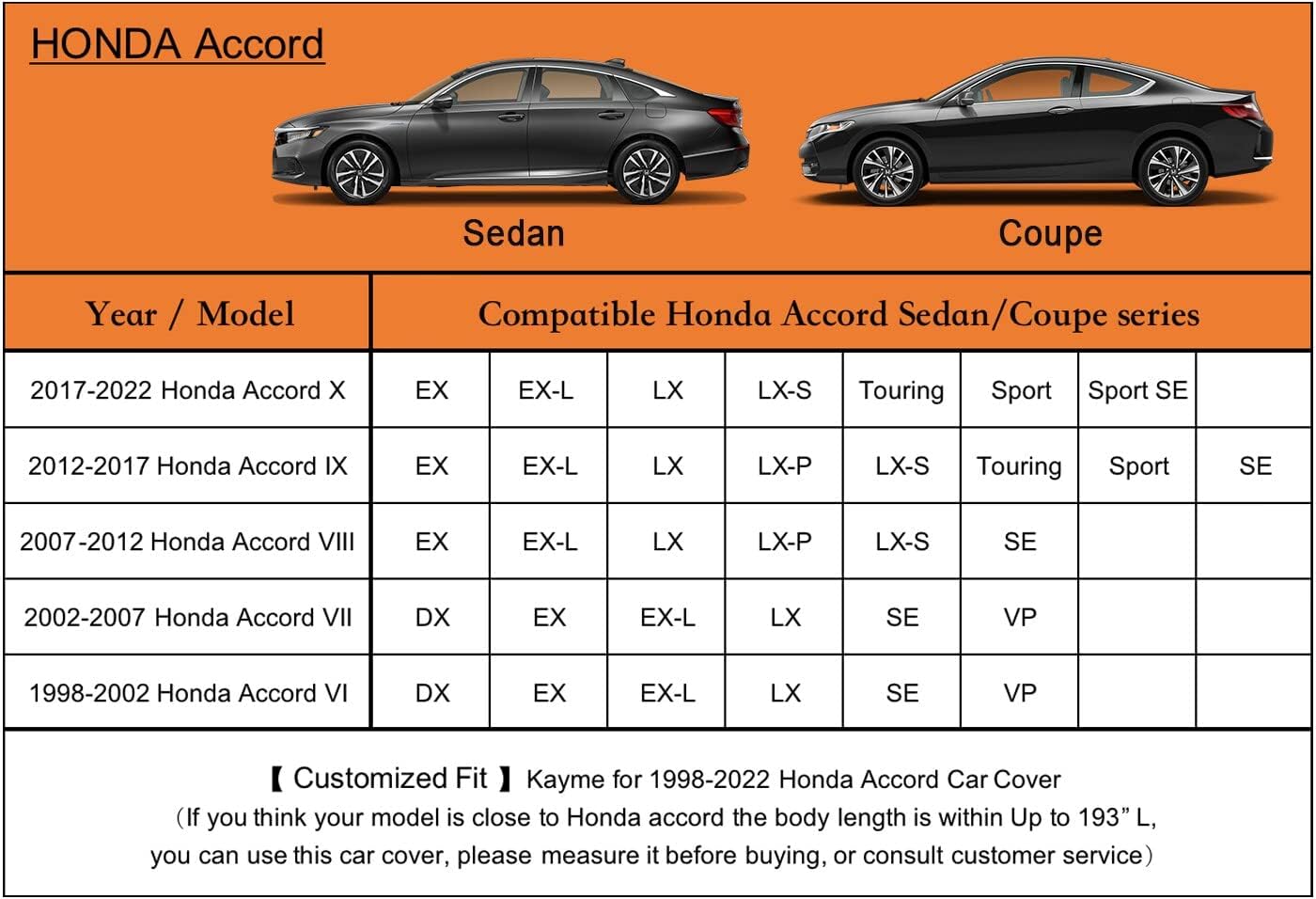 kayme 7 Layers Car Cover Custom Fit for Honda Accord Sedan/Coupe (2001-2025) Waterproof All Weather for Automobiles, Outdoor Full Cover Rain Sun UV Protection with Zipper Cotton/Black