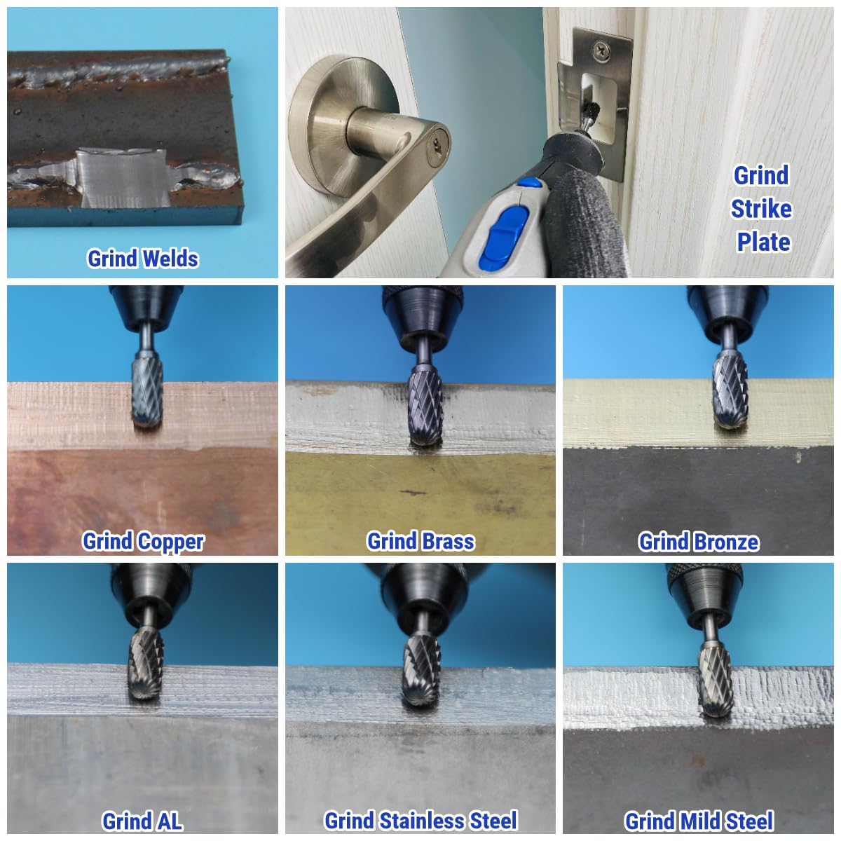 - The 20pcs double cut tungsten carbide burr bits set compatible with Dremel metal grinding bits compatible with Hardell Milwaukee DeWALT angle or straight air or electric die grinder or drill.
