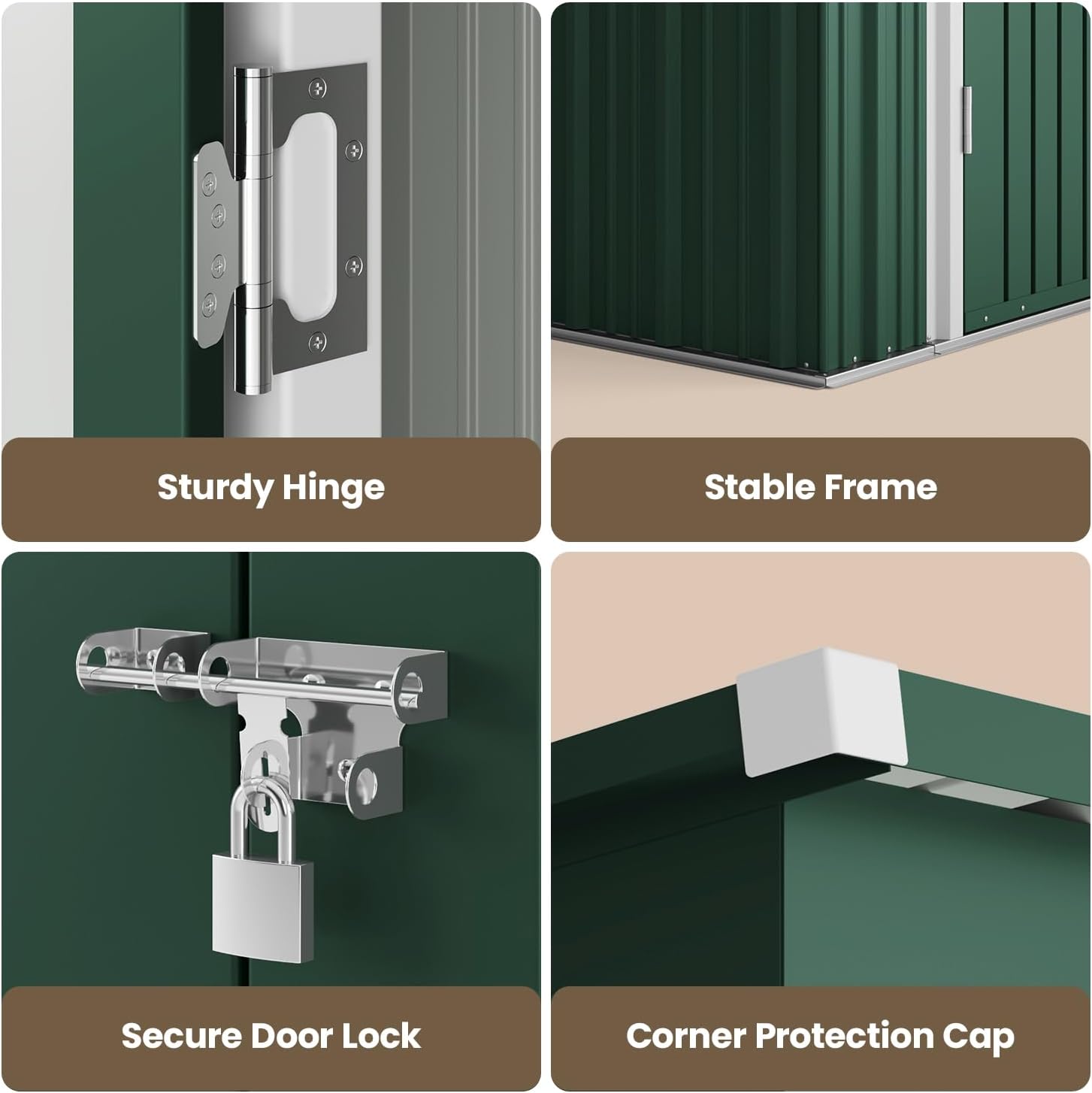 - 【High-quality Material】Made from thicker galvanized steel, this Bealife garden storage is built for durability. Its UV-resistant finish protects it from sun damage, while built-in vents promote airflow to prevent overheating. Furthermore, the door of this backyard storage shed is equipped with a lock, which can perfectly protect your outdoor belongings.