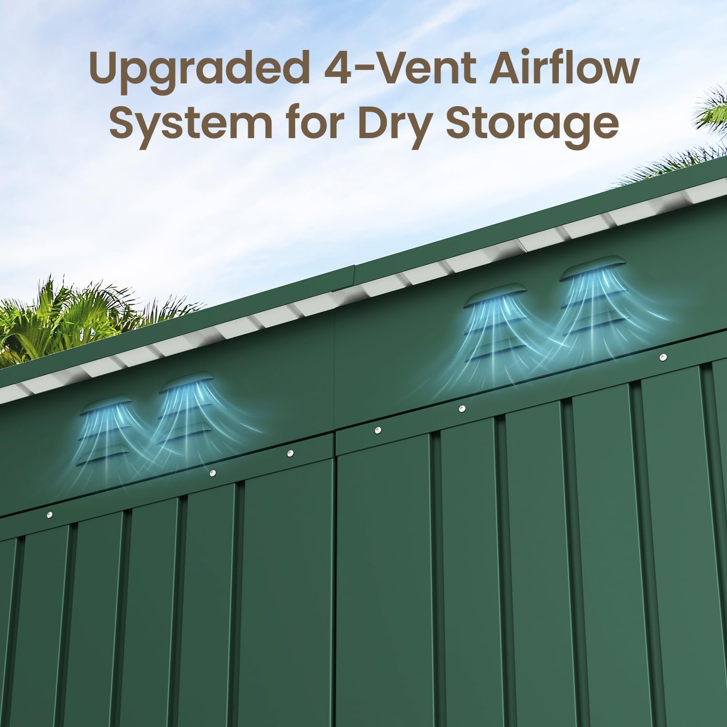 - 【Multifunctional Outdoor Storage Shed】This large metal shed is ideal for a range of outdoor spaces like backyards, patios, and gardens. Use it to store mowers, power tools, bicycles, or even as a pet shelter that’s warm, ventilated, and safe in any weather. It can also double as a backyard garbage room to keep waste organized and your space neat.