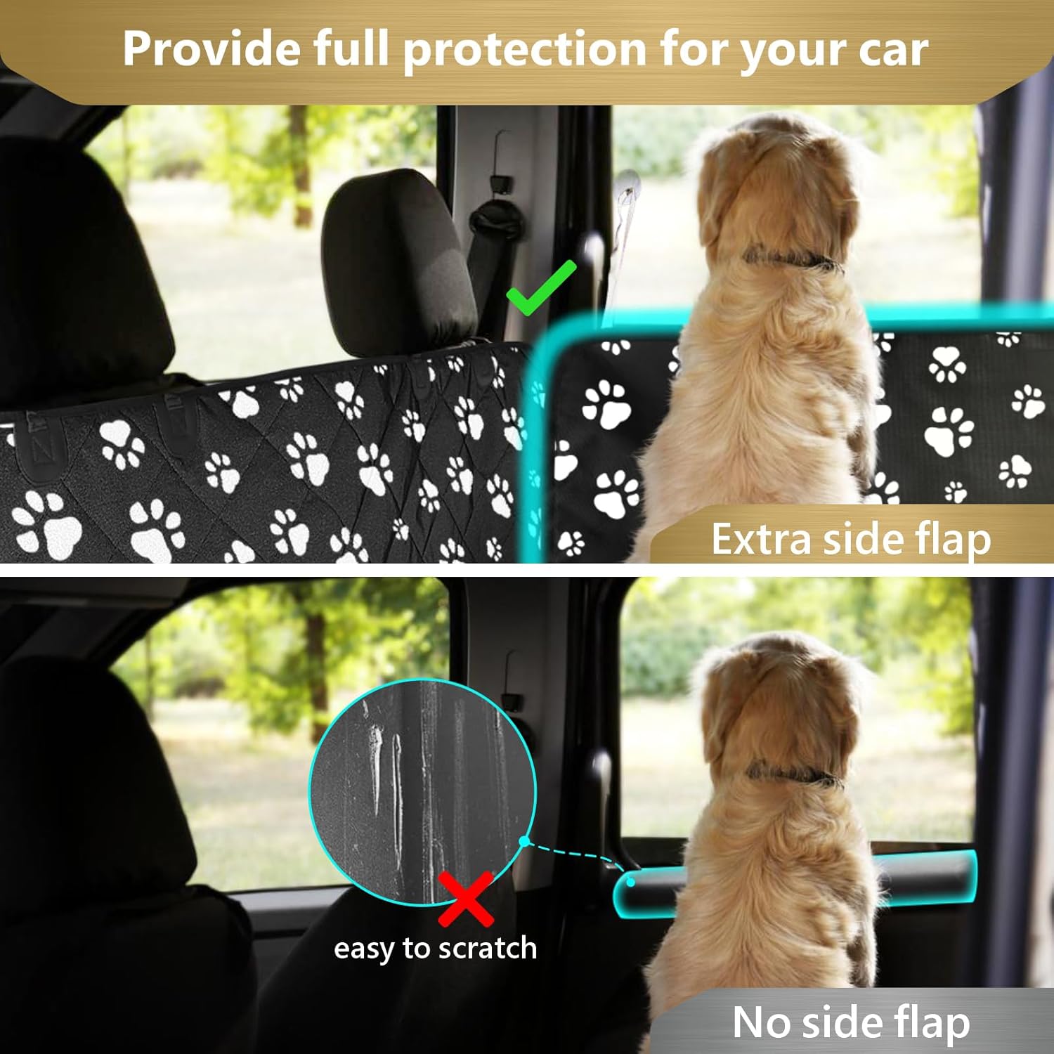 - Full Protection - This dog cargo liner keep your car clean from pet fur, paw dirt, and scratches; 2 Side flaps protect the car sidewall; Bumper flap withstands dog's claw when getting in; Preserves the life and look of car's interior regardless of your pet's adventure