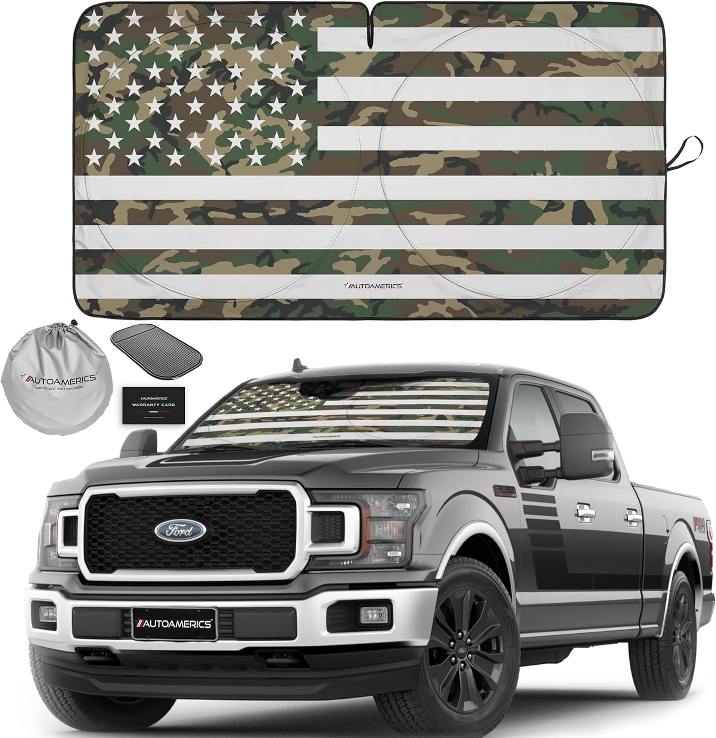 Autoamerics 1-Piece Windshield Sun Shade ERDL Camo American Flag USA Design - Foldable Car Front Window Sunshade for Most Sedans SUV Truck - Blocks Max UV Rays and Keeps Your Vehicle Cool - X-Large