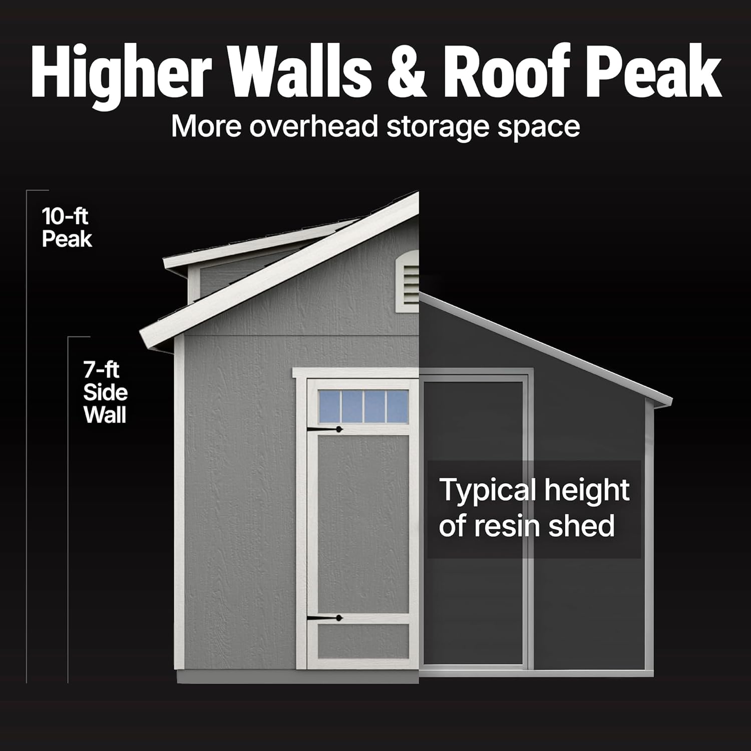 - Over-sized, 7 ft. high side walls and 10 ft. peak; extended roof overhangs