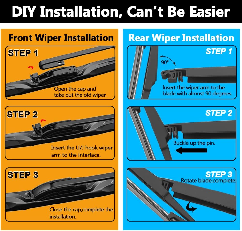 - WHAT YOU GET:Complete set of 3 wiper blade : 26"+18"+14" (Left and right and Rear),12-month worry-free warranty and friendly customer service.