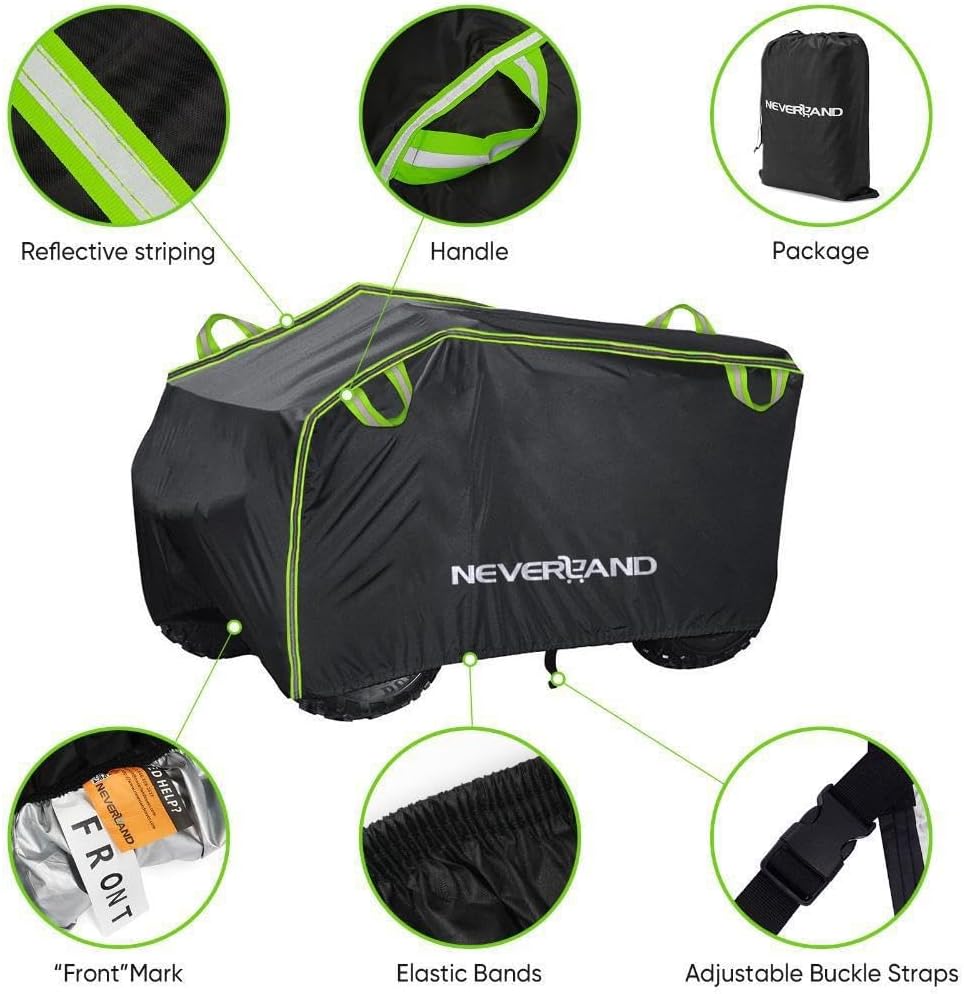 - 【Quality Material】NEVERLAND ATV cover is made of high-quality polyester fabric, which is more tear-resistant, wear-resistant, anti-ultraviolet and weather-resistant. ATV cover waterproof heavy duty design protects your ATV from dust, rain, heat, tree sap, damaging UV rays and bad weather