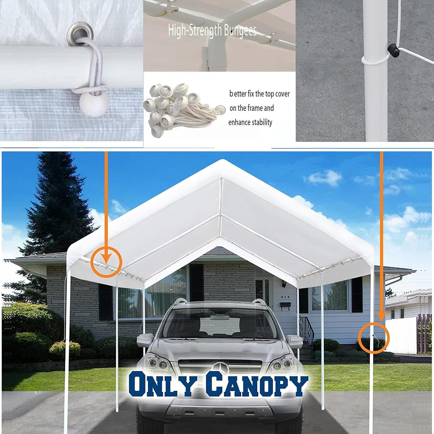 10' x20' Upgraded Carport Replacement Canopy Cover for Car Garage Shelter Party Tent with Ball Bungees White (Only Top Cover, Frame is not Included)