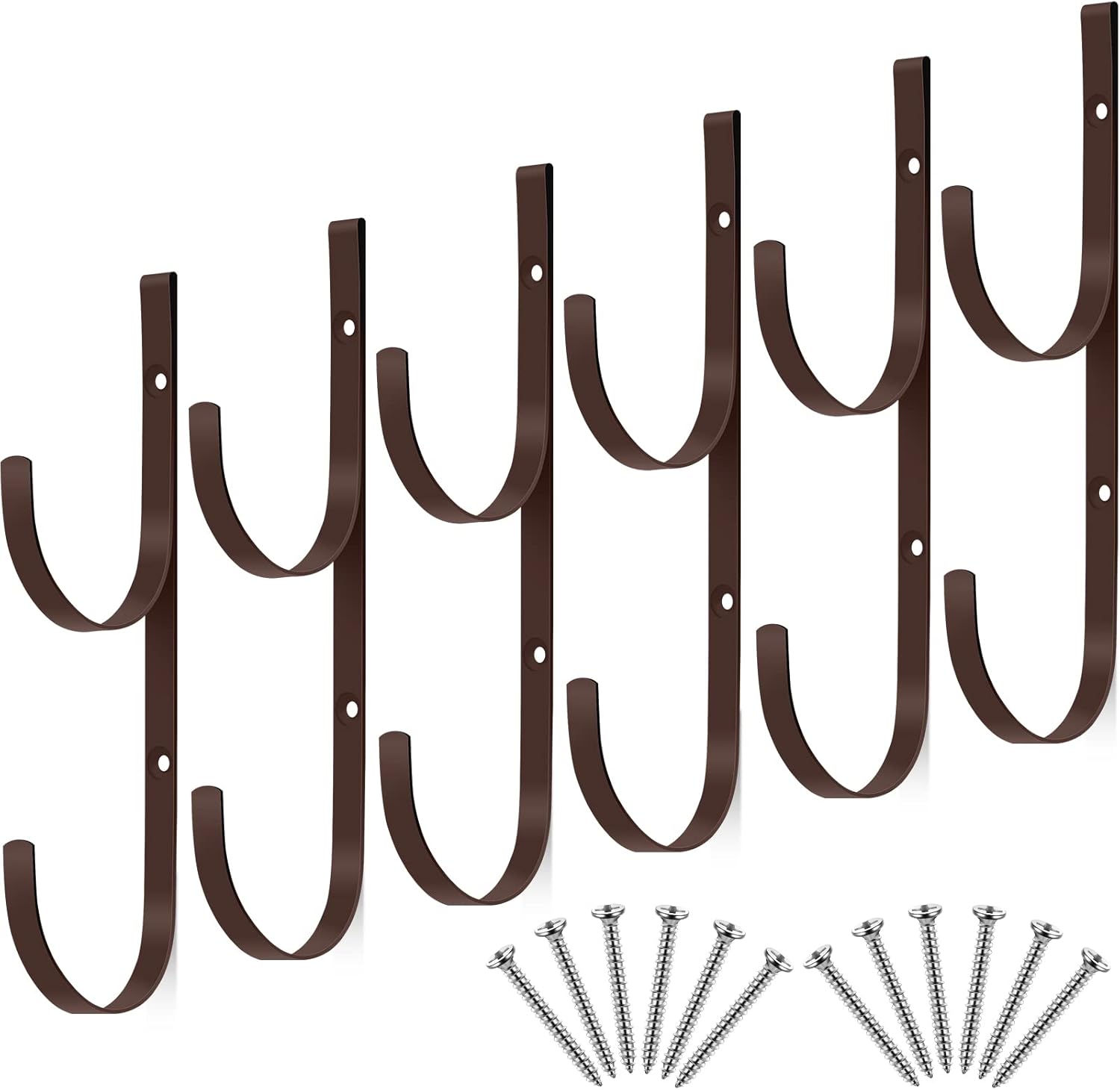 6 Pieces Pool Pole Hook Hanger Swimming Metal Brackets Pool Hook with 12 Pieces Screws for Telescopic Poles, Skimmers, Leaf Rakes, Net, Brush, Vacuum Hose, Garden and Pool Accessories (Coffee Color)