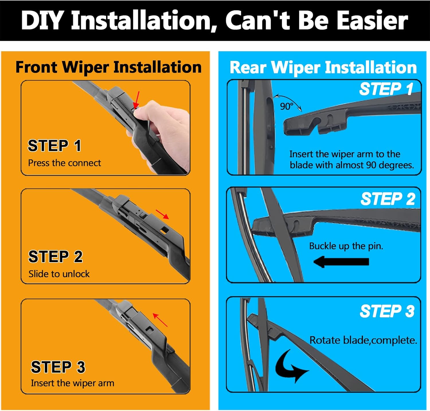 - WHAT YOU GET:Complete set of 3 wiper blade : 26"+20"+14" (Left and right and Rear),★SUPER CUSTOMER SERVICE ★ AUTOBOO windshield wipers provide 24-hour online service, 6-month-returning freely.