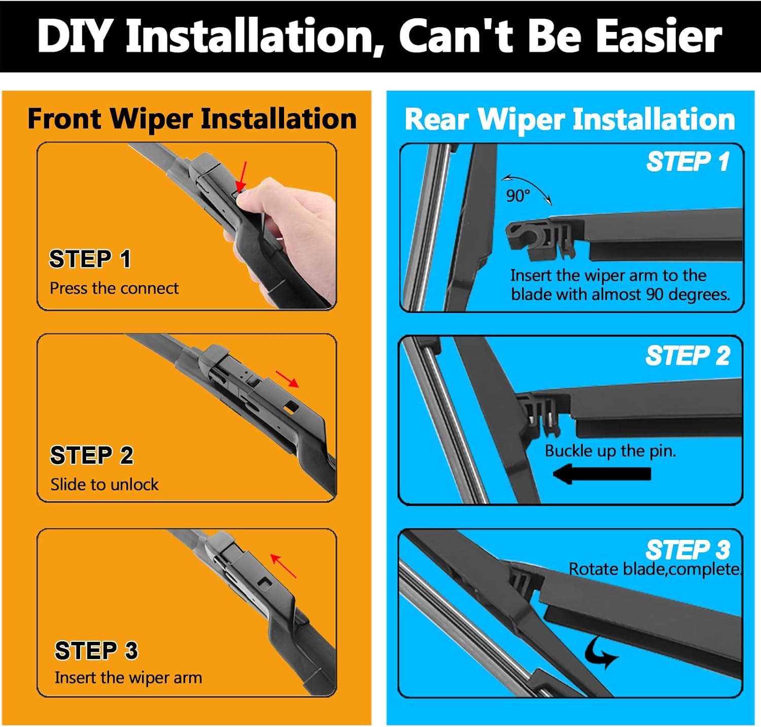 - EASY-TO-INSTALL:Quick and easy to install. fit perfect to your car, like the original parts. It’s installed to the wiper arm by top lock