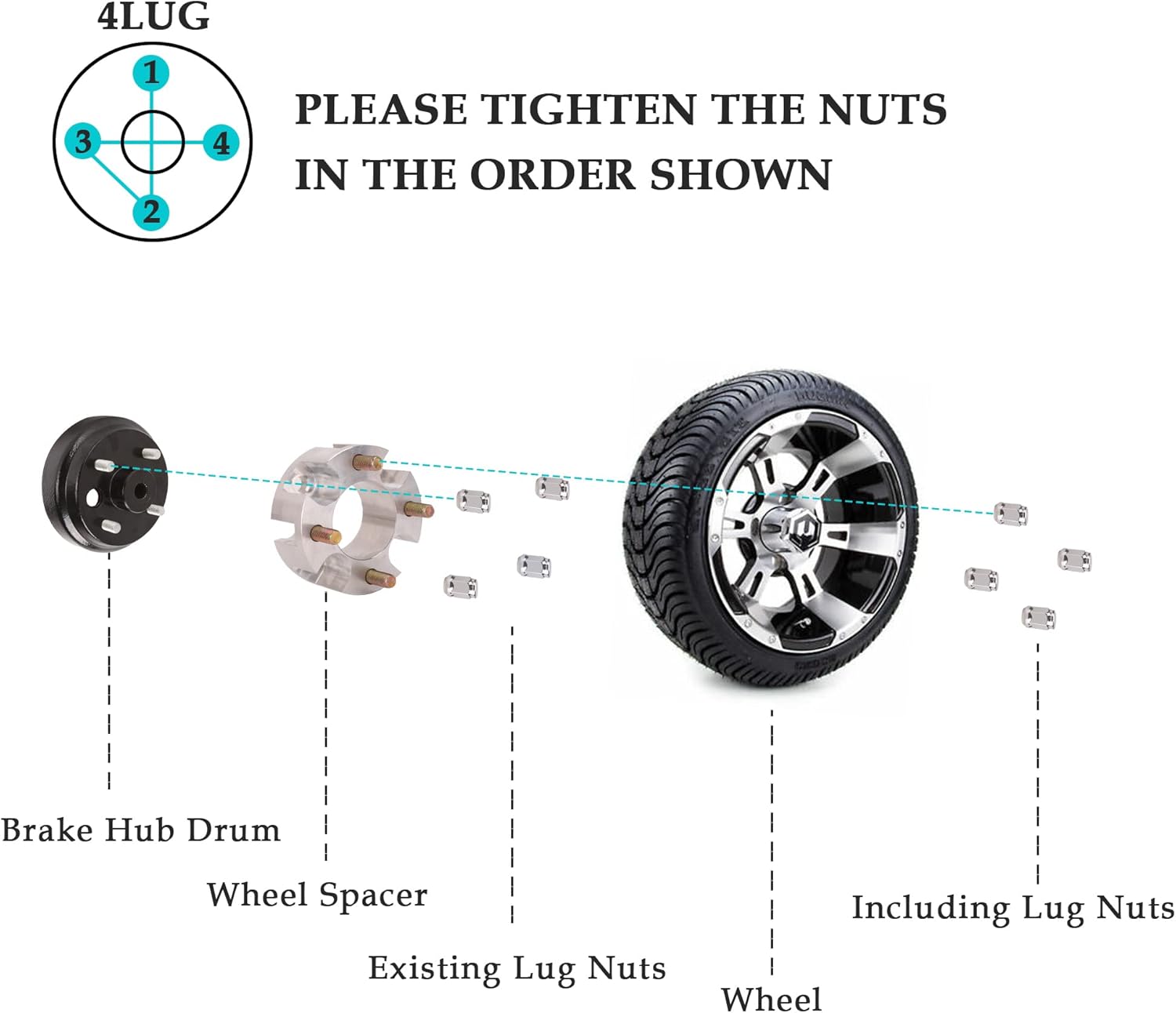 - 2 Inch wheel spacers for EZGO, Club Car & Yamaha golf cart, add 4 inches to the wheel axle track to allow for larger, wider or higher traction tires/rims/wheels and a more aggressive look