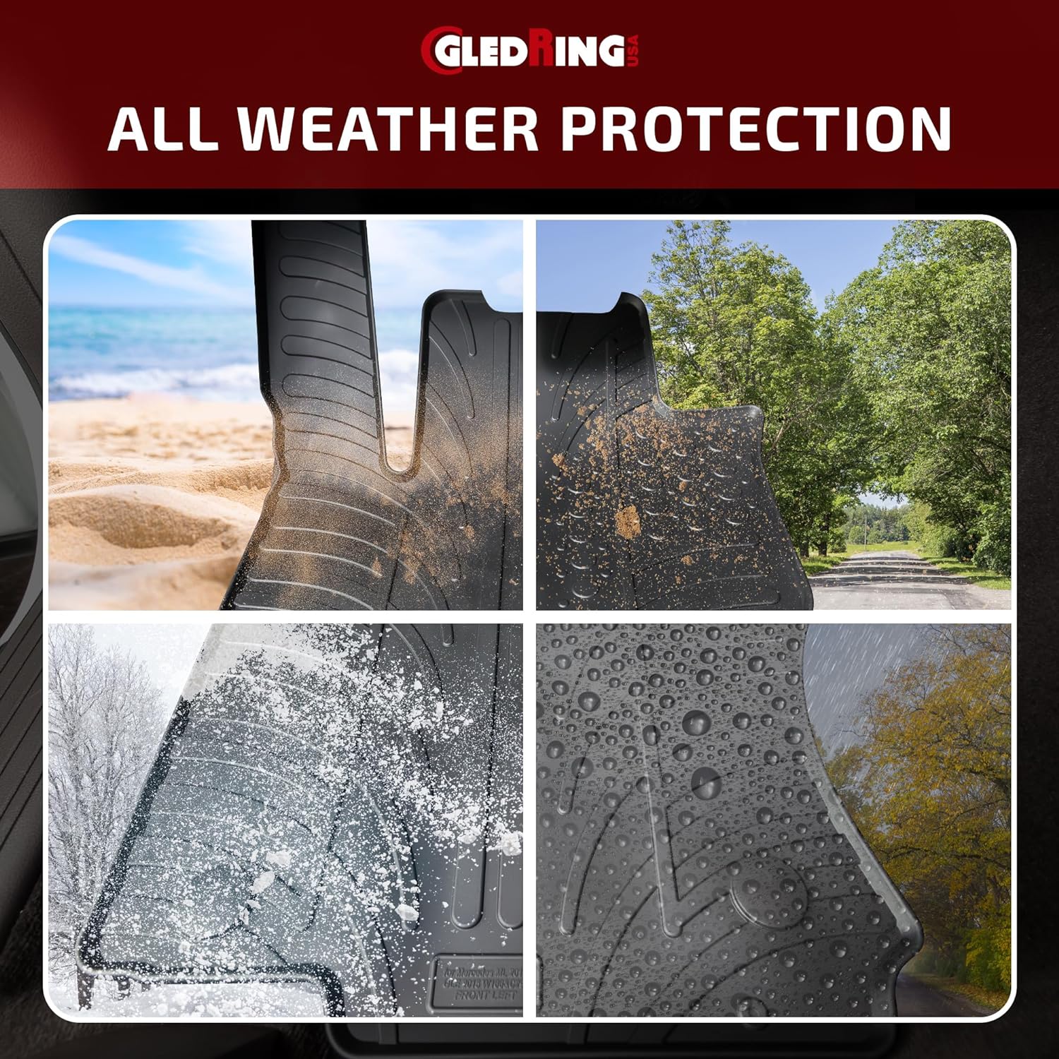 - ALL-WEATHER PROTECTION – Gledring USA Custom Fit mats deliver year-round protection for your car’s carpet. Built to withstand rain, snow, and mud, these durable mats ensure your vehicle stays clean no matter the season.