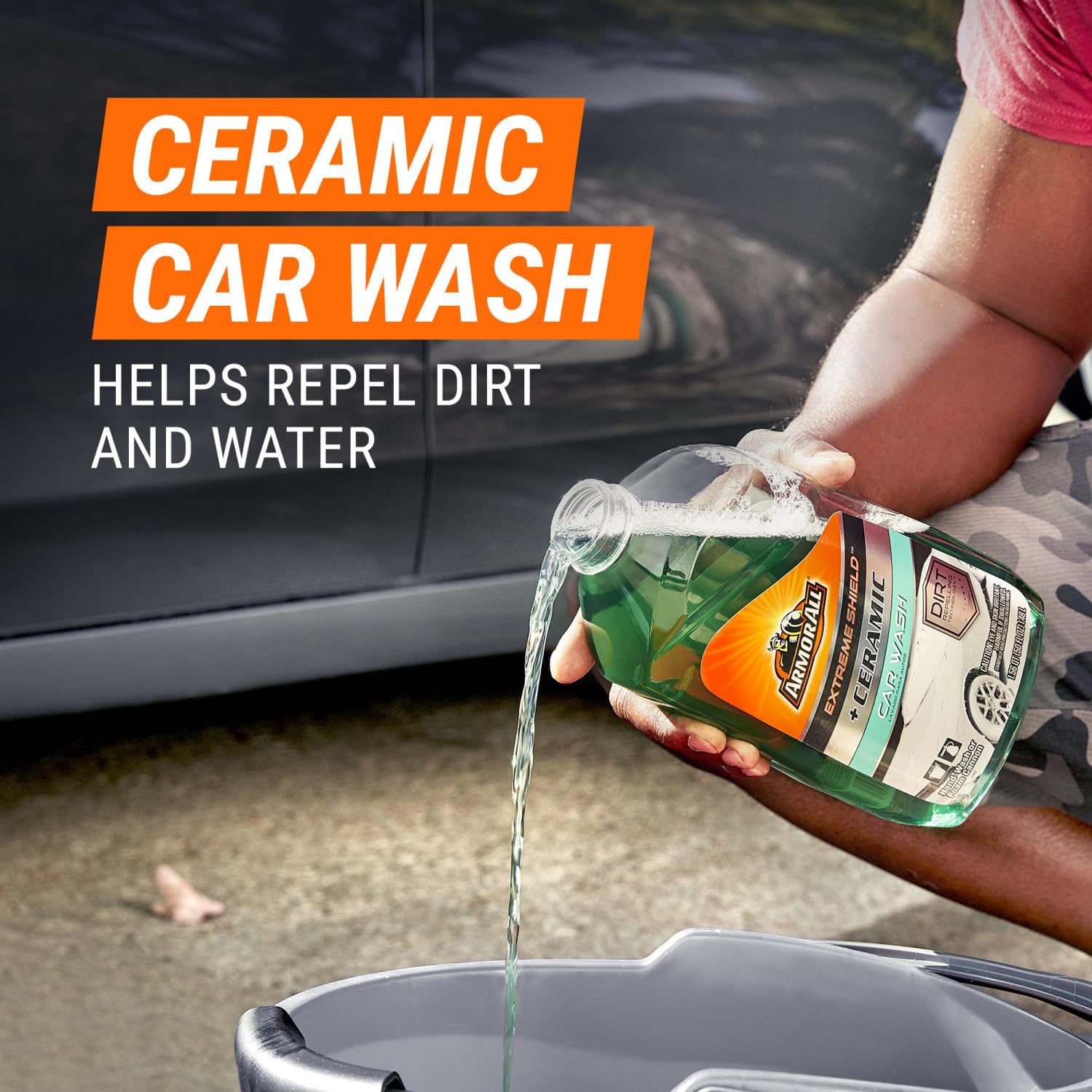 - [Car Wash]: Extreme Shield + Ceramic Car Wash is a foaming car wash that uses hydrophobic technology to create an invisible barrier that enhances water beading and helps prevent dirt from sticking