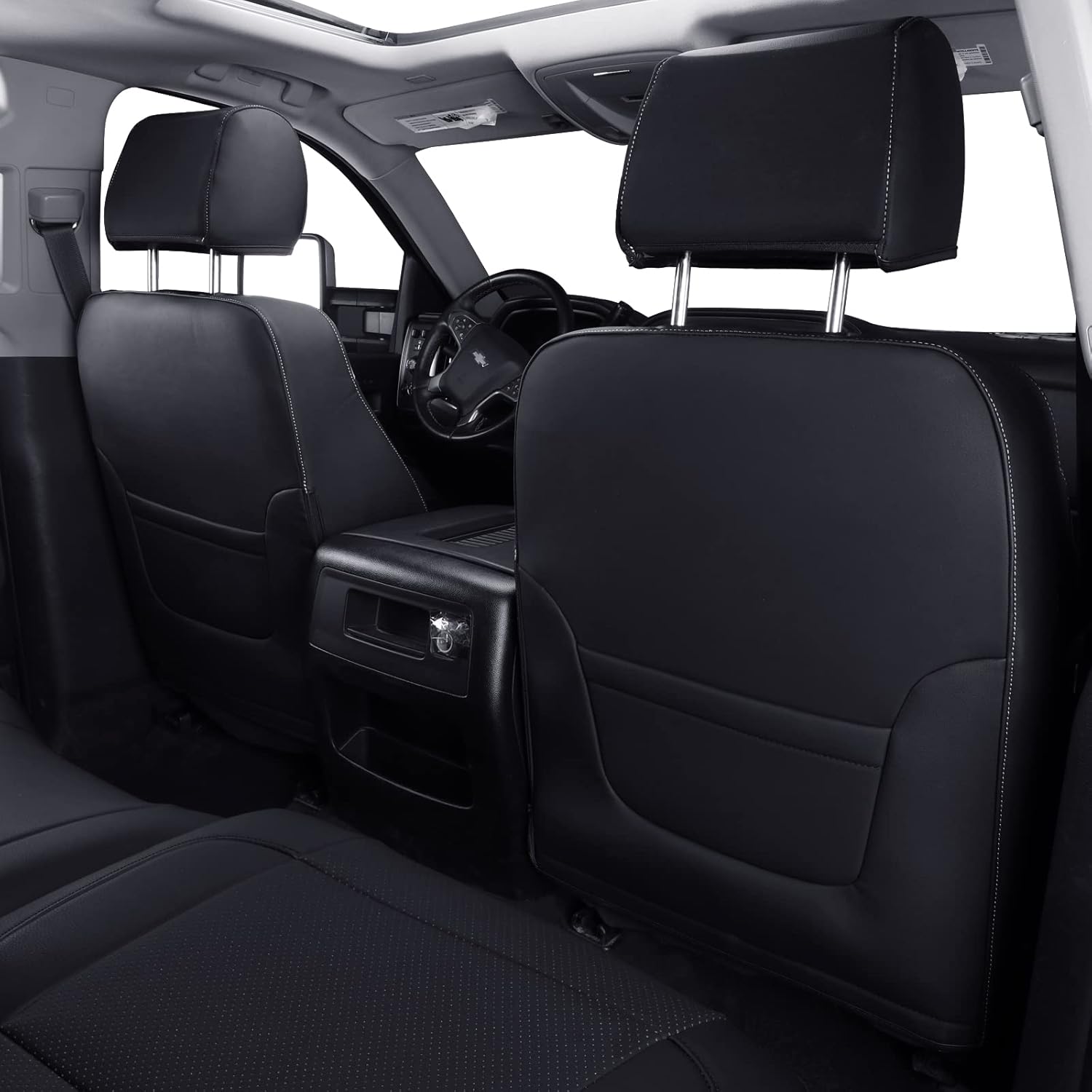 LUCKYMAN CLUB Front Seat Covers fit for Crew Cab/Extended Cab/Regular Cab of 2014-2018 Chevy Silverado Sierra 1500, 2015-2019 Silverado Sierra 2500 3500 (Black 2 pcs)