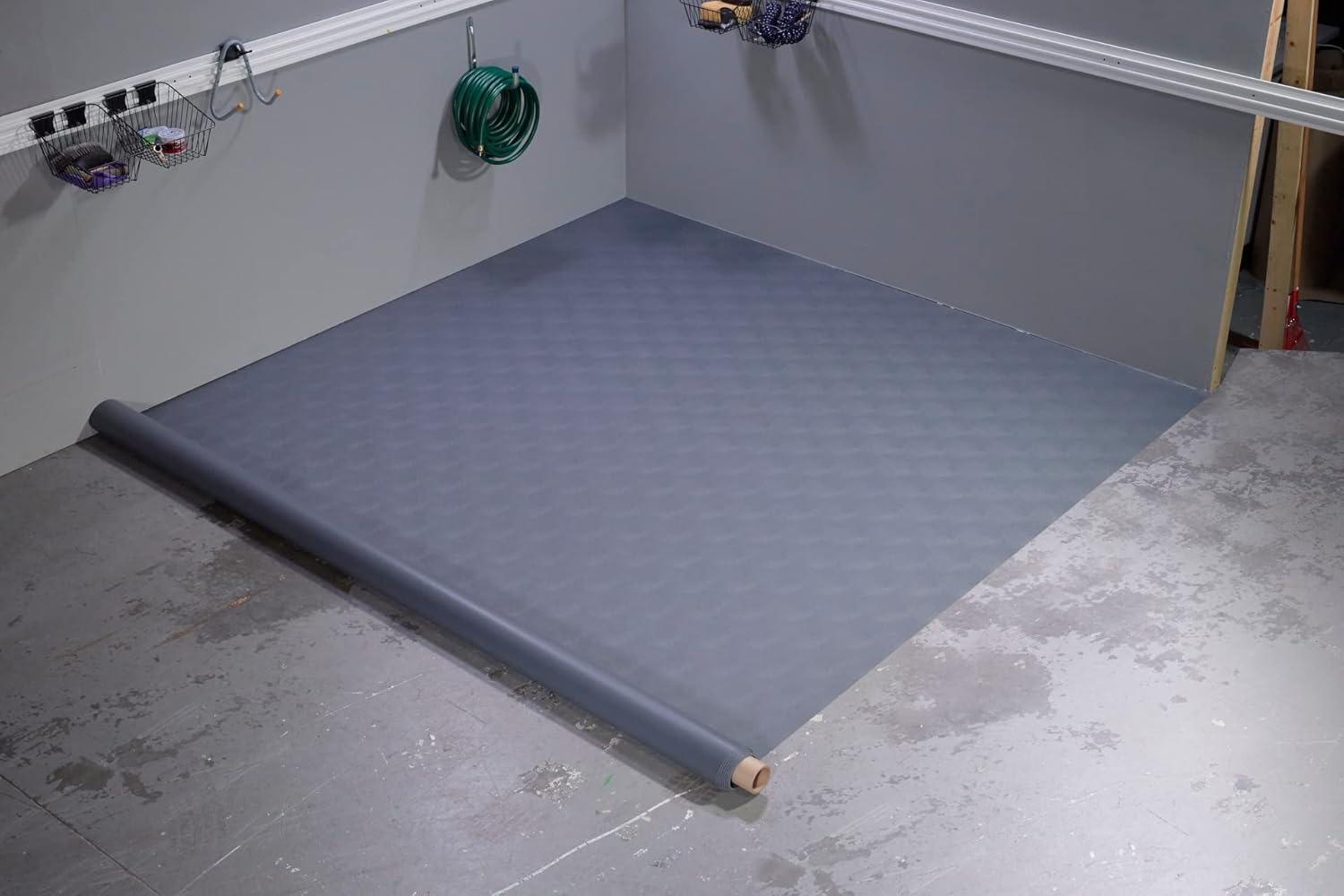 G-Floor Seamless Sheet Vinyl Shed Flooring Cover with Bonded Fibrous Backing - Levant Pattern (8' x 8', Slate Grey)