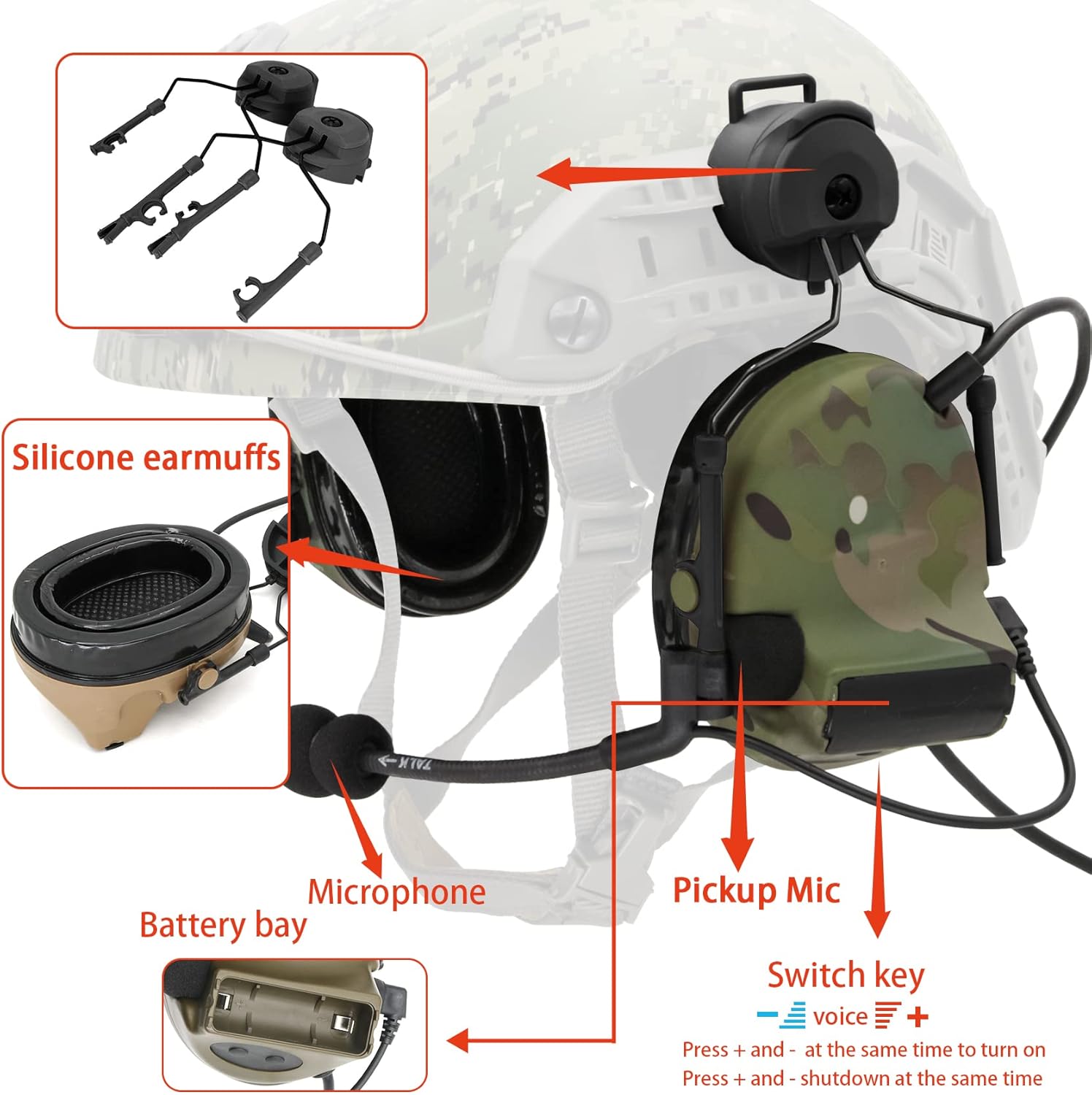 COMTA 2 Helmet-Type Tactical Headset with U94 PTT 2pin,Noise Canceling Headphones,for Airsoft Hunting Shooting