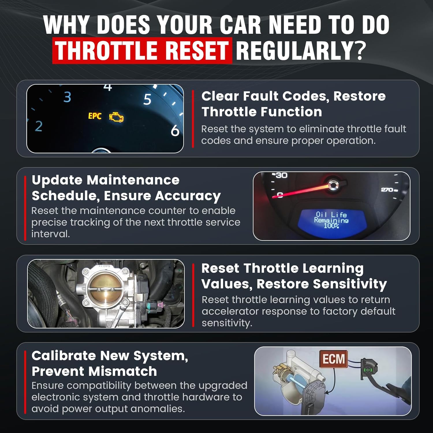 - 【Restoring the Throttle to Its Optimal Working Condition】After long-term use, the throttle may develop carbon deposits or exhibit inaccurate opening. Performing a reset operation with the IF740 car scanner can restore the throttle to its optimal working condition, thereby improving air intake and enhancing engine performance. It also allows you to resolve faults caused by throttle issues after resetting the throttle.