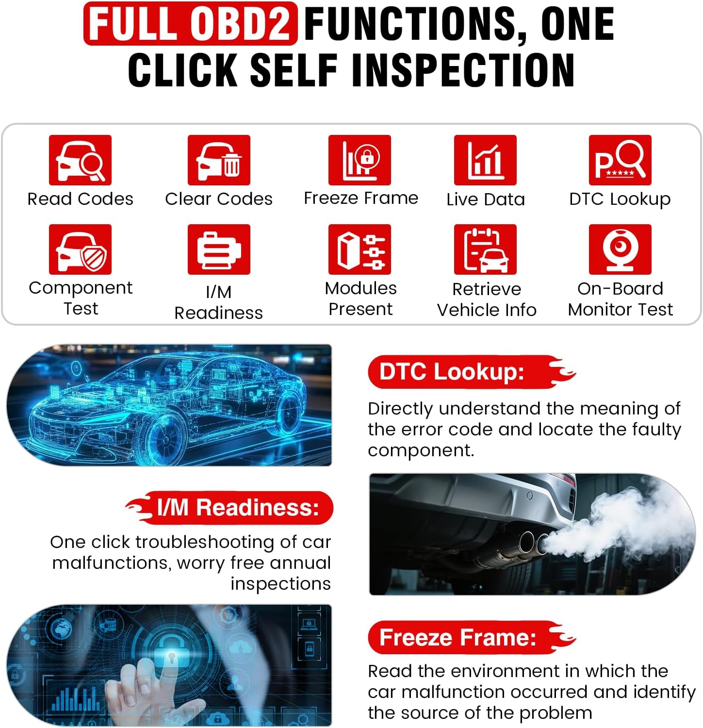 - 【Full OBD2 Functionality】The IF742 scan tool’s DTC Lookup translates fault codes into clear insights instantly. Its I/M Readiness simplifies emissions checks with one click, while Freeze Frame rewinds to the fault’s exact moment for precise root-cause analysis. Complemented by a unified data stream dashboard and advanced diagnostics like O2S Monitor, OBMon Test, and EVAP TEST, it empowers you with comprehensive, multi-layered vehicle insights.