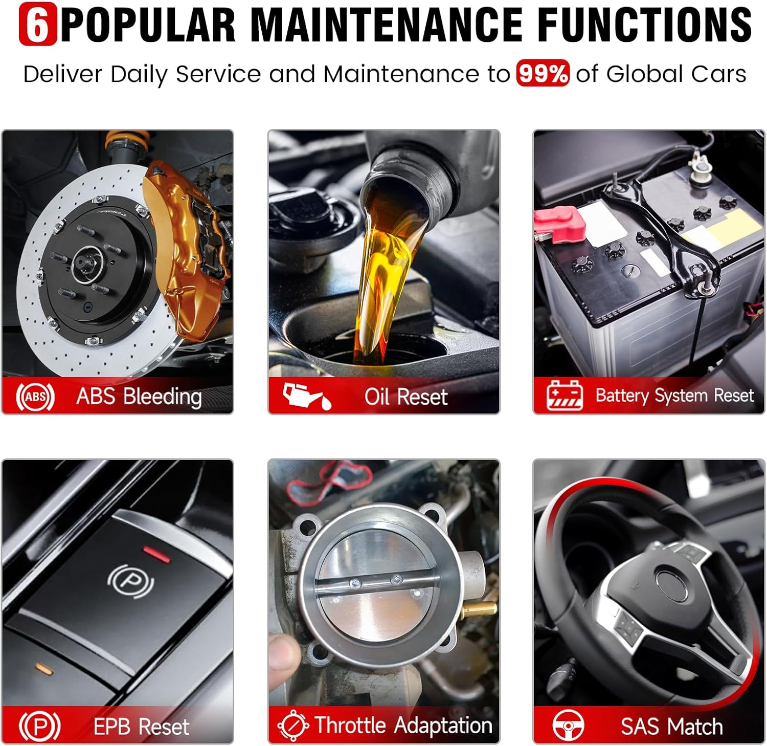 - 【6 Resets, ABS Bleeding/Oil/EPB/SAS/Throttle/BMS】 What can IF742 do for you? Instantly purge air from brake lines to restore brake sensitivity; precisely calibrate maintenance cycles to eliminate false alerts; resolve parking brake issues remotely with a single click; stabilize steering by recalibrating sensor data; optimize idle and acceleration performance for smoother engine operation; and deeply reset battery systems to extend lifespan and range through precise parameter monitoring.