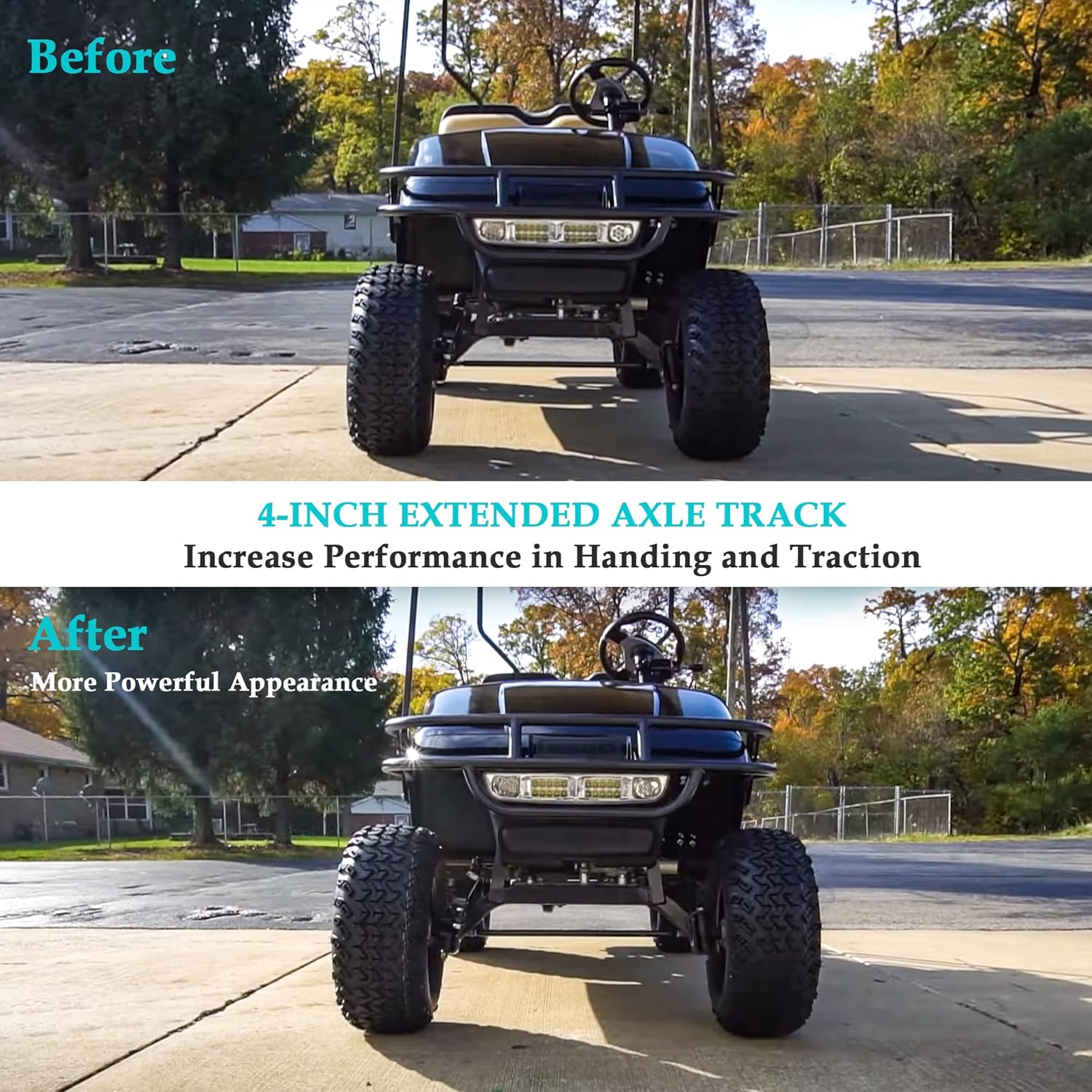 - 2 Inch wheel spacers for Yamaha, EZGO & Club Car golf cart, add 4 inches to the wheel axle track to allow for larger, wider or higher traction tires/rims/wheels and a more aggressive look
