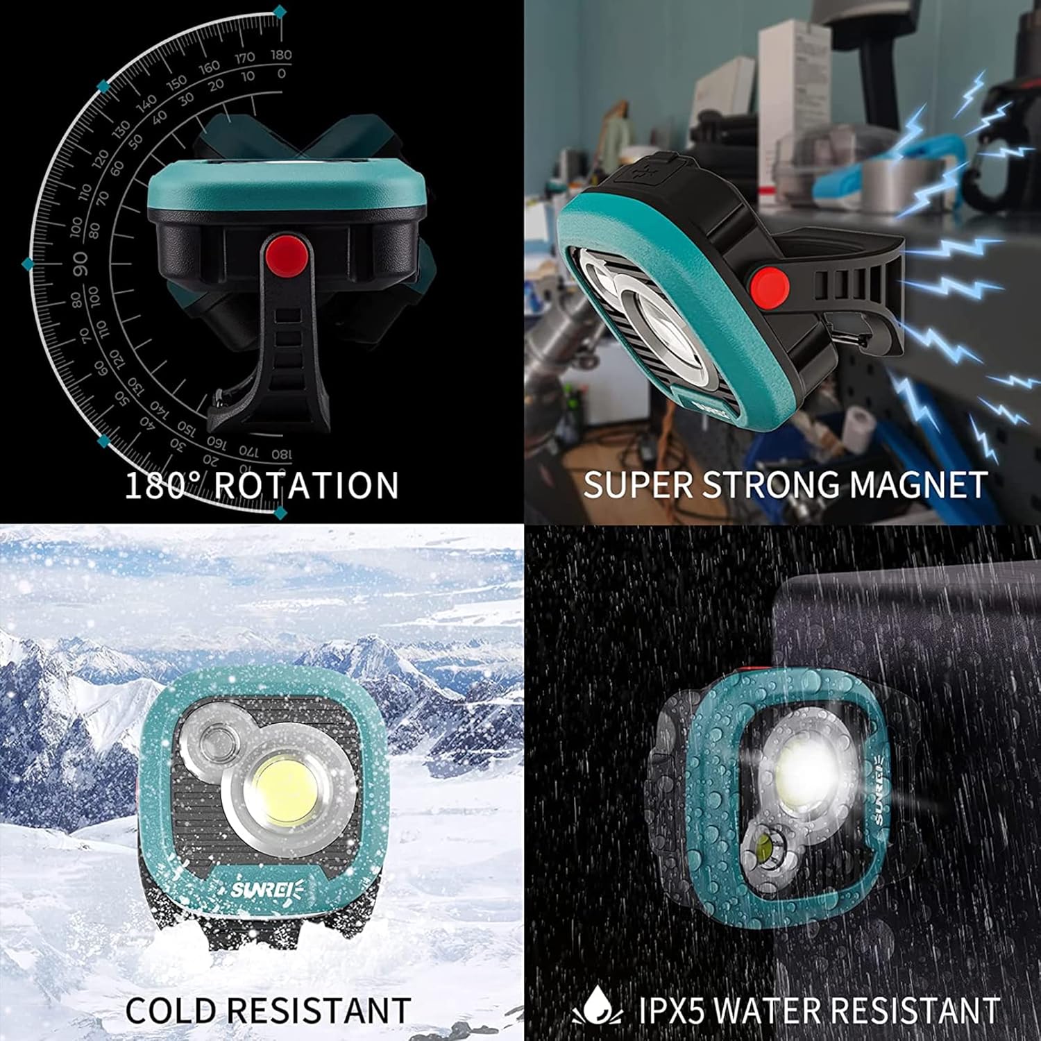 - [Magnet/Hook /Tripod Hole/Gift]: Job Site & Security Lighting can be attached to any metal frame; Clip-on design, underhood work light can be hung anywhere, and the bottom is equipped with a standard tripod hole to improve work efficiency.Give this beautifully rechargeable cob work light as a outdoor Christmas decorations gift lights Or a birthday gift for mechanics men,presents,dad,teen boys, friends or family, husband, workmate.