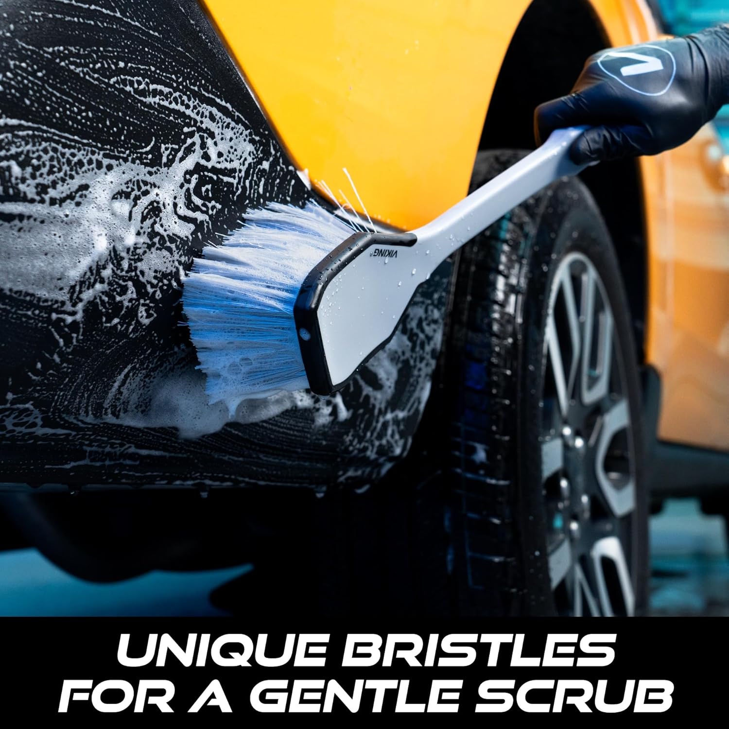 VIKING Car Wash Brush, Wheel and Fender Brush, Long Handle Tire Cleaner for Car Detailing, 16.5 Inch, Grey/Black