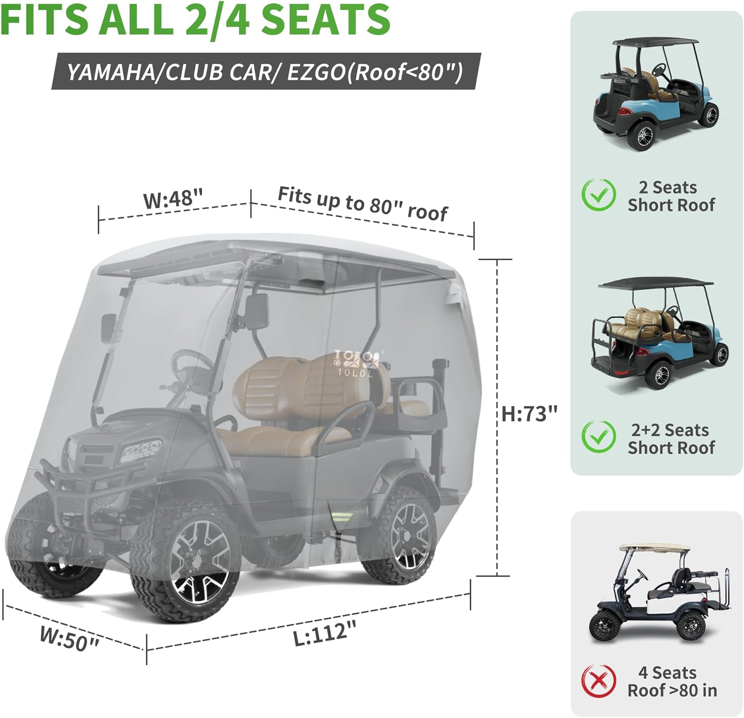 10L0L Heavy Duty Golf Cart Cover for 2/4 Passengers EZGO, Club Car and Yamaha, All Weather Outdoor Protection Weatherproof