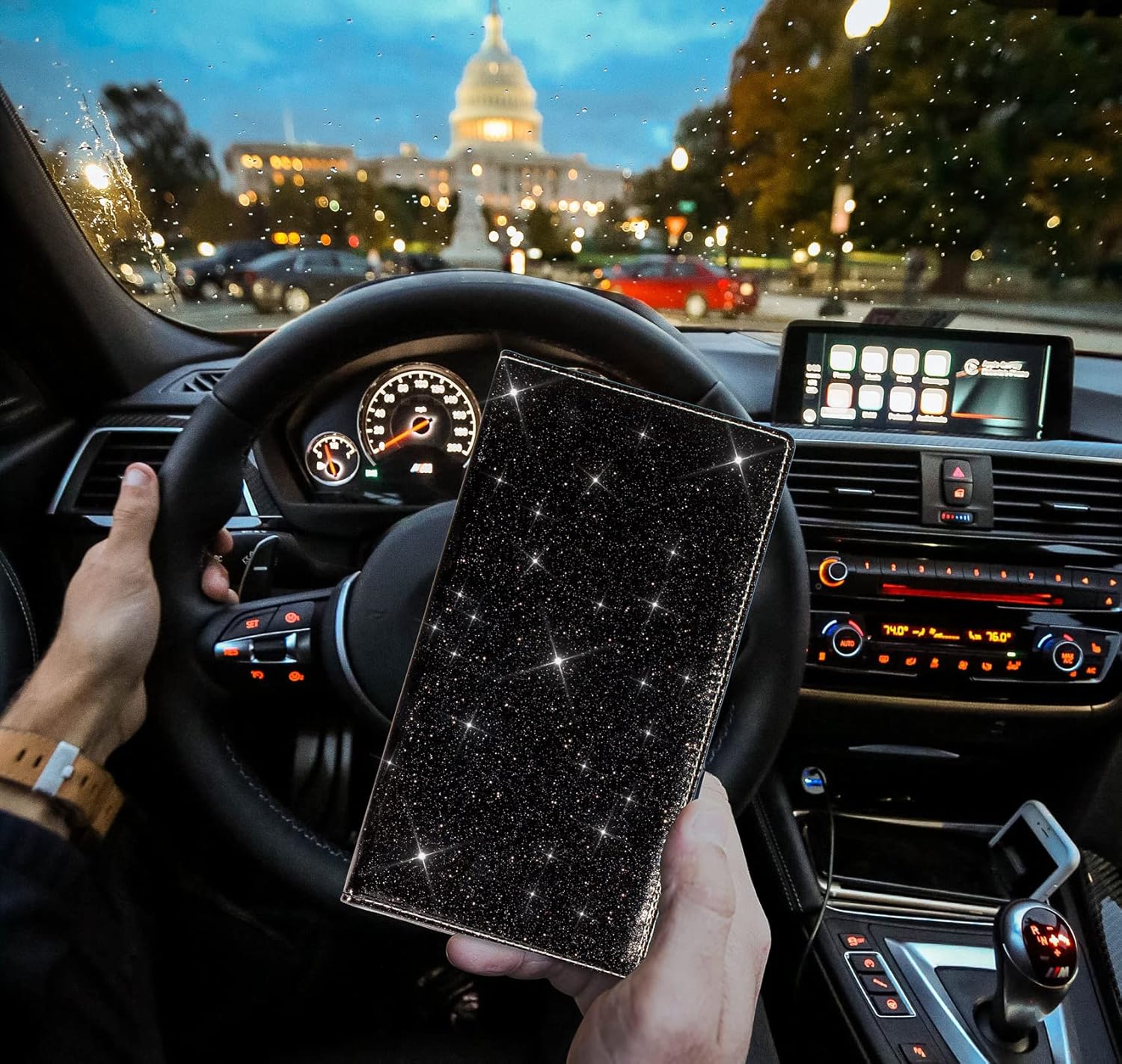 TOURSUIT Car Registration and Insurance Card Holder, Vehicle License Document Glove Box Compartment Organizer, Interior Car Accessories for Women Men Teens (Glitter Black)