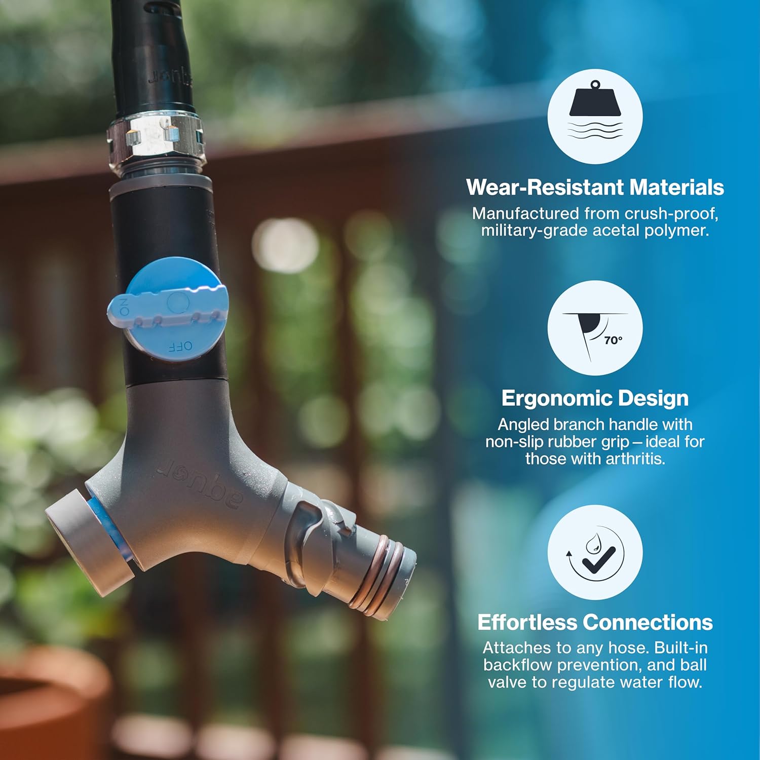 - Ergonomic Non-Slip Grip: The practical handle angle and comfortable, non-slip grip provide easy connections, while the hose connector's convenient branch shape and multidirectional positioning allow effortless connection to your outdoor water spigot.