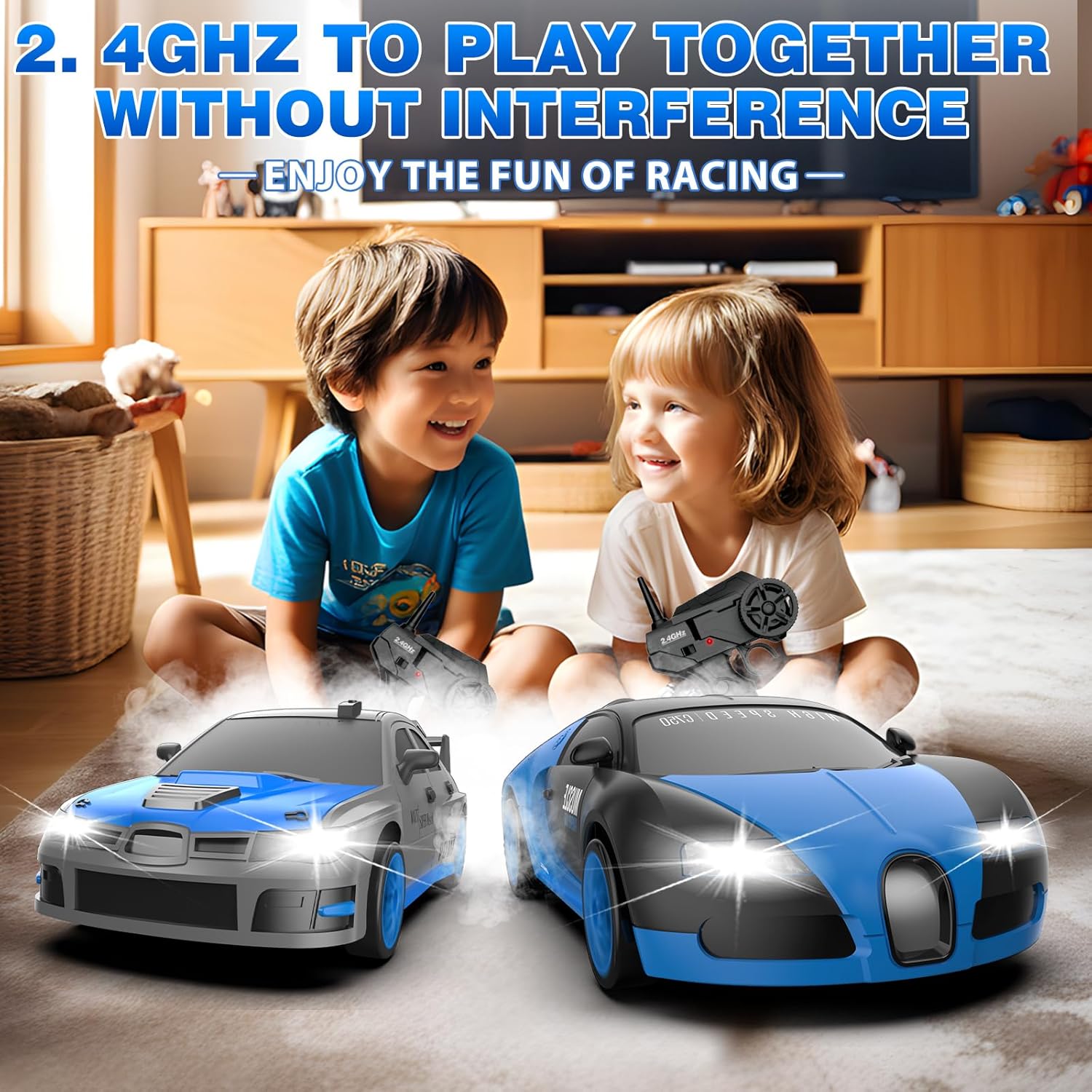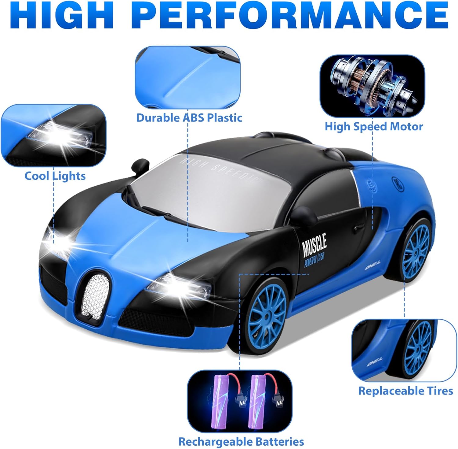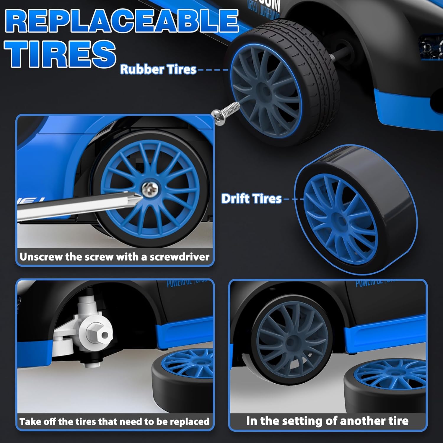 RC Drift Car, 1:24 4WD Drifting RC Cars 2.4GHz High Speed Remote Control Car with LED Light, Two Batteries and Drift Tires Racing Toy Cars for Kids Boys Girls Adults, Blue