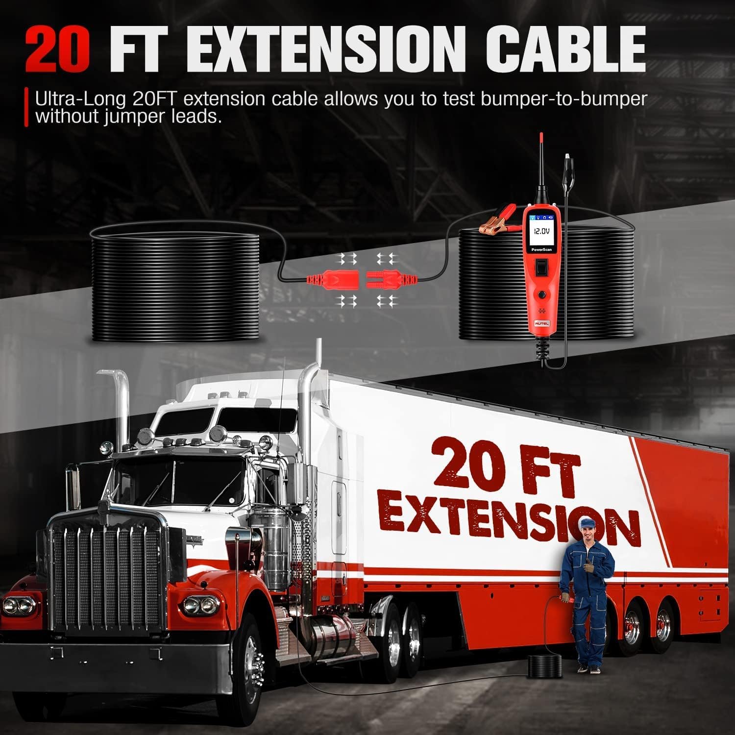 Autel PowerScan PS100 Power Circuit Probe Kit - 12V 24V Car Circuit System Diagnostic Tool, Automotive Circuit Tester with 20ft Extension Cable, Easy to Read AC/DC Current Resistance