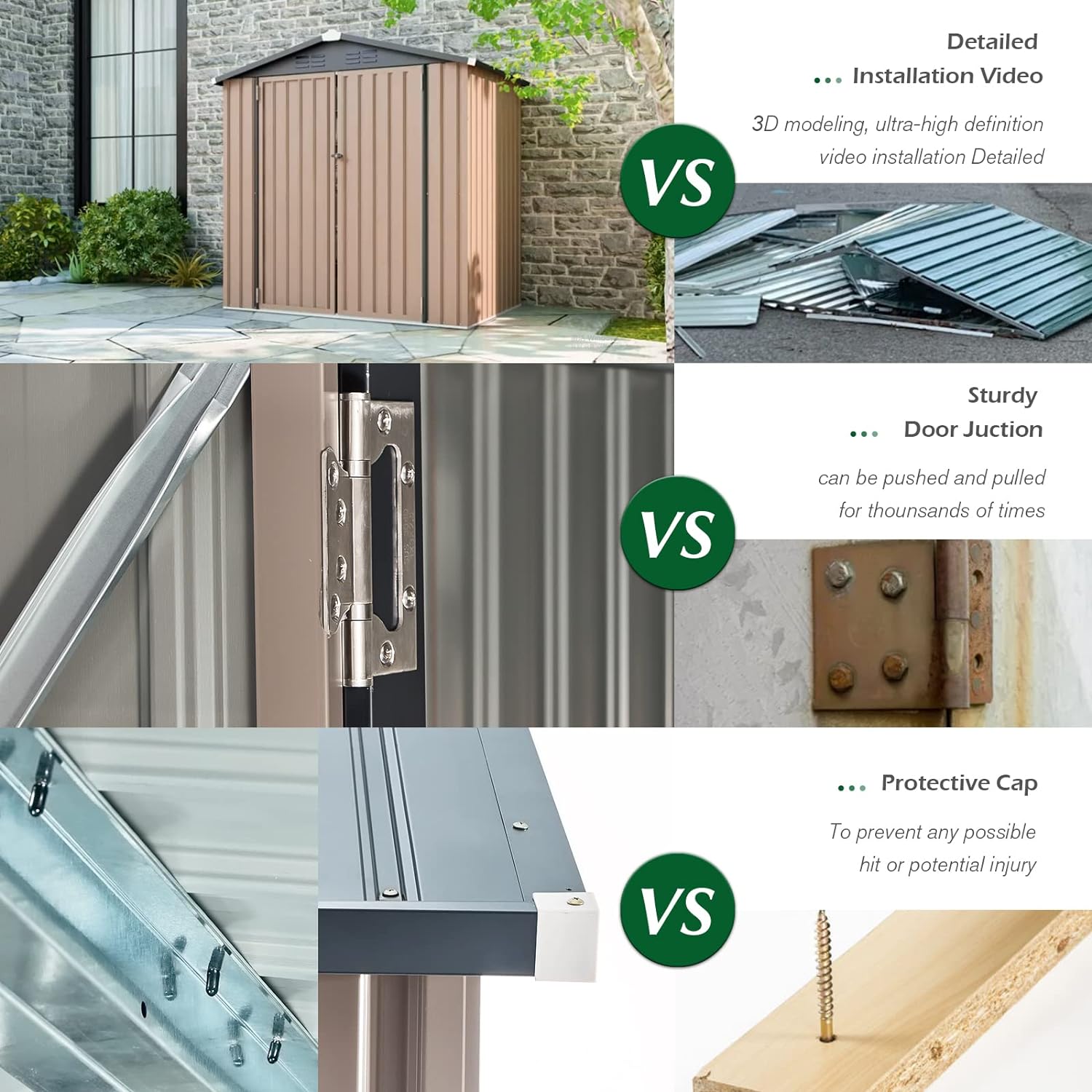 - 【AECOJOY Yard Storage Room】:Utility Shed with design of Durable structure, using panels of thickened galvanized steel for better reinforcement, functional tool shed under all kinds of weather conditions. Metal Locking system with keys makes it a safer shed for storage and tools keeping, Top quality lockable doors.