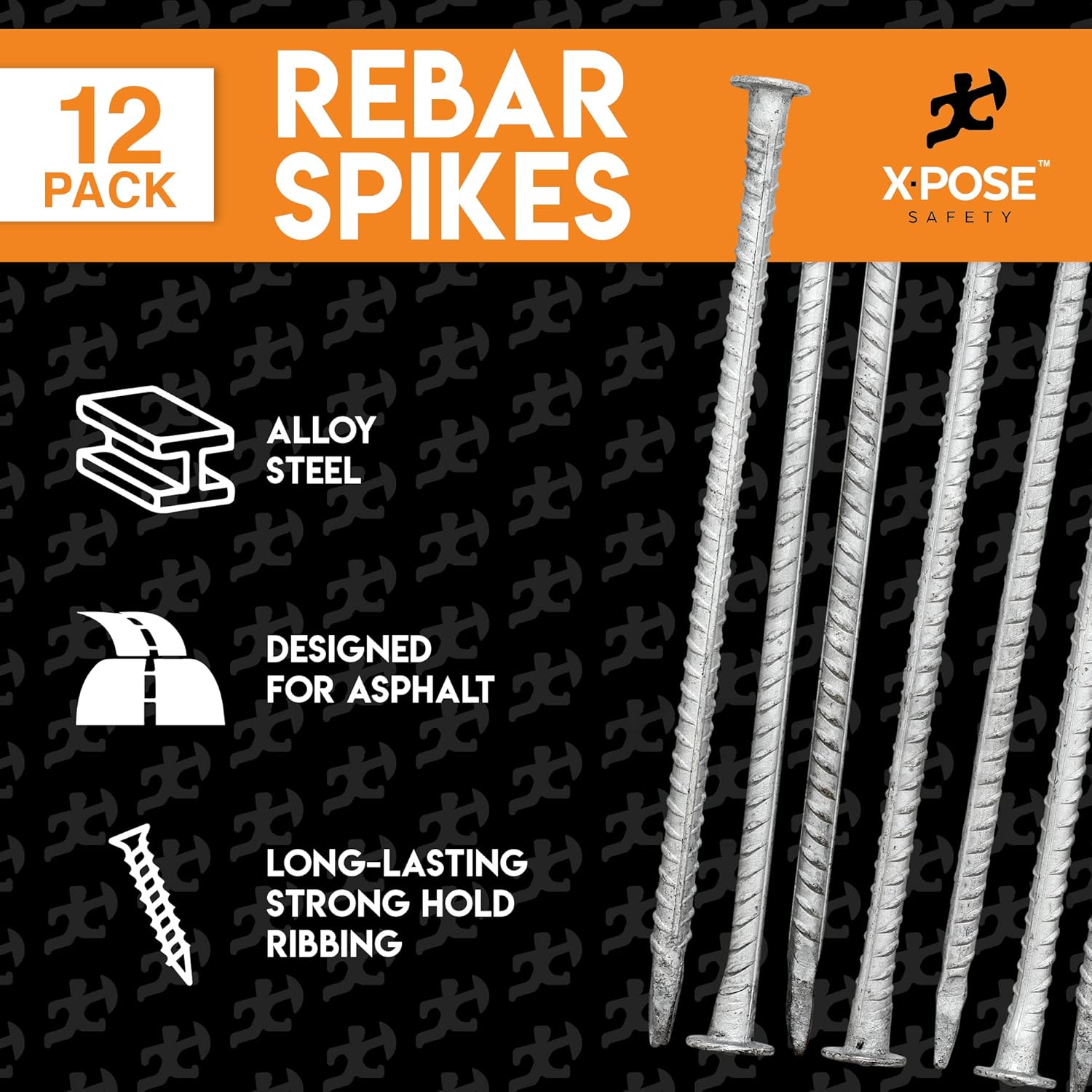 - 14" LONG REBAR SPIKES - Rebar stakes designed for asphalt, blacktop, tarmac, macadam, concrete, and pavement installations. 14-inch length with a 1/2-inch diameter is ideal for traffic and parking applications.
