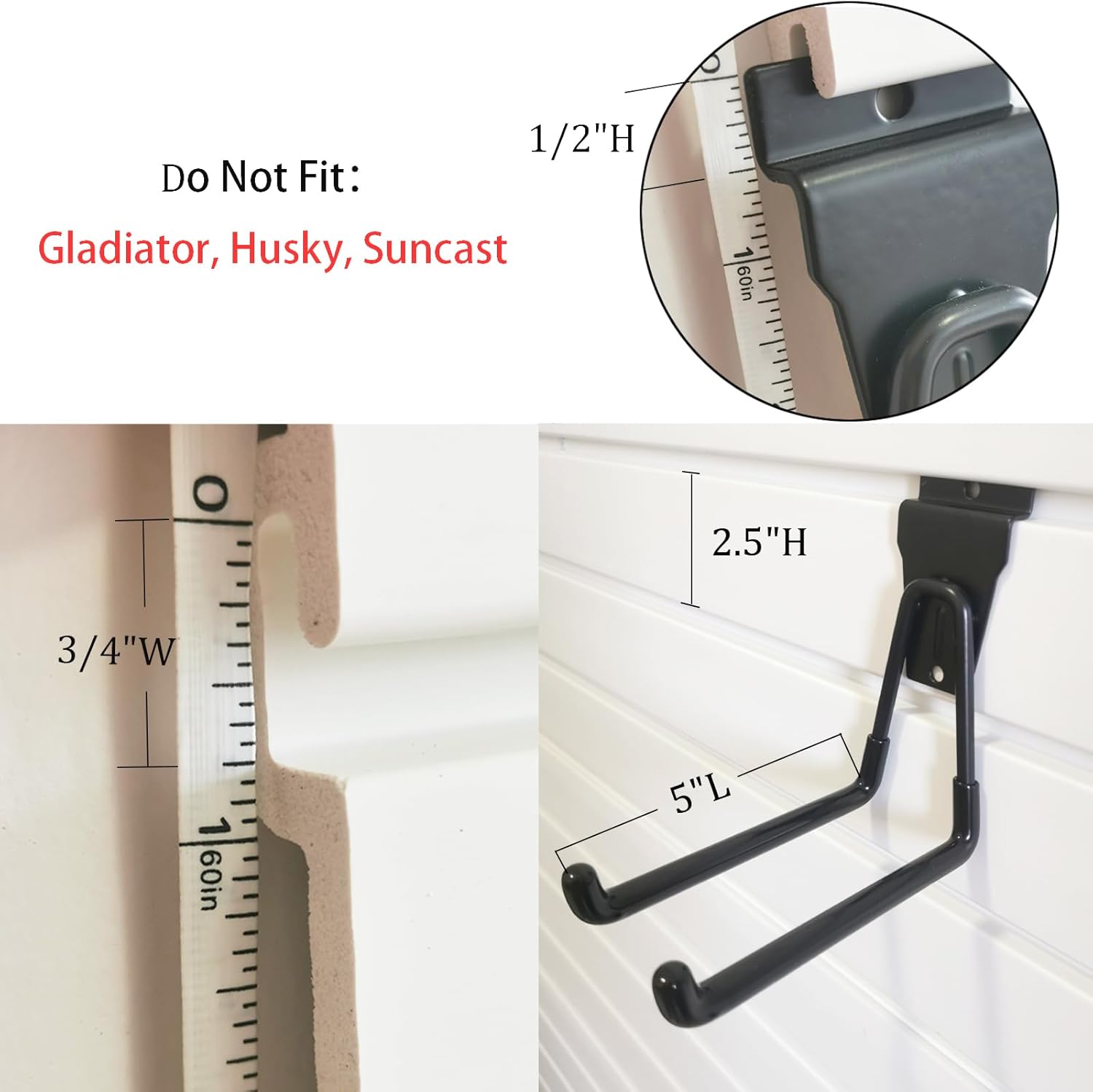 - Effortless Setup: Installs easily with Proslat, Crownwall, StoreWALL, HandiWall, NewAge, Garage King, DLDIRECT, Garage Tek, Hello Garage Slatwall, etc.; NOT compatible with Gladiator, Husky, Suncast, Craftsman slat panel