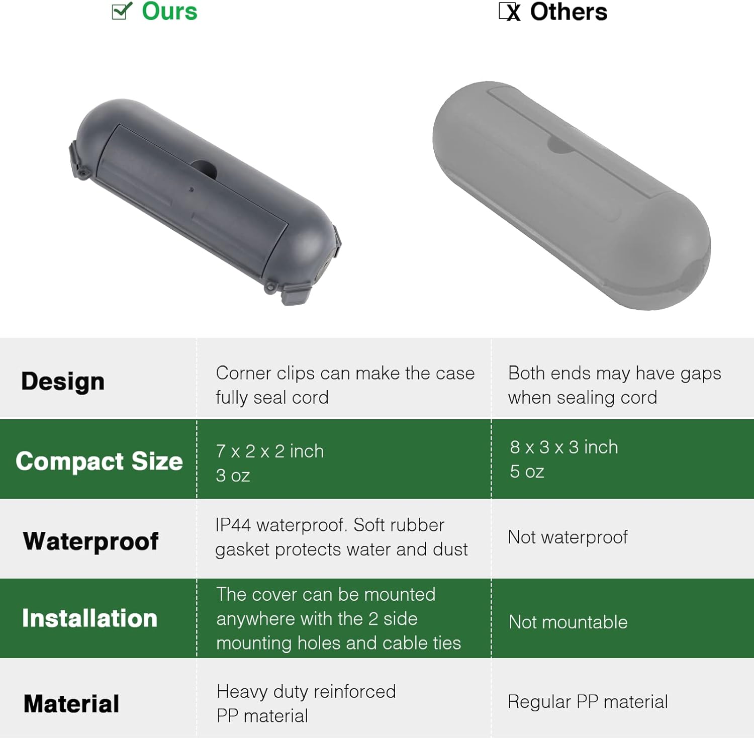- With the 4 corner clips, snap-lock lid, and rubber gaskets, this outdoor extension cord cover box is IP44 waterproof. Perfect to seal 14/16/18 gauge cord, braided cable and flat wire.