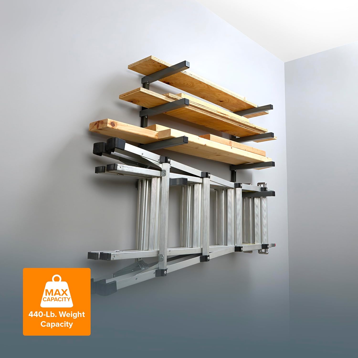 - Heavy-duty Construction: Our BORA lumber rack is made from powder-coated, 1-inch steel tubes, making it sturdy. Drill them to the wall, adjust the distance, and you got your garage wall rack!