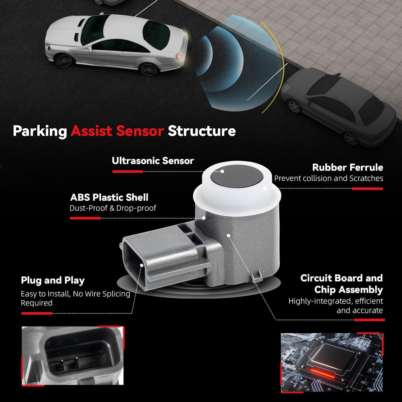 - [Durability & Easy Installation]: Crafted from OE comparable materials, this sensor is built to be waterproof and Shockproof. Designed for universal compatibility, it features a seamless plug-and-play setup—no drilling or complex wiring required. Enjoy quick and effortless installation in just minutes, while its rugged construction ensures long-lasting performance