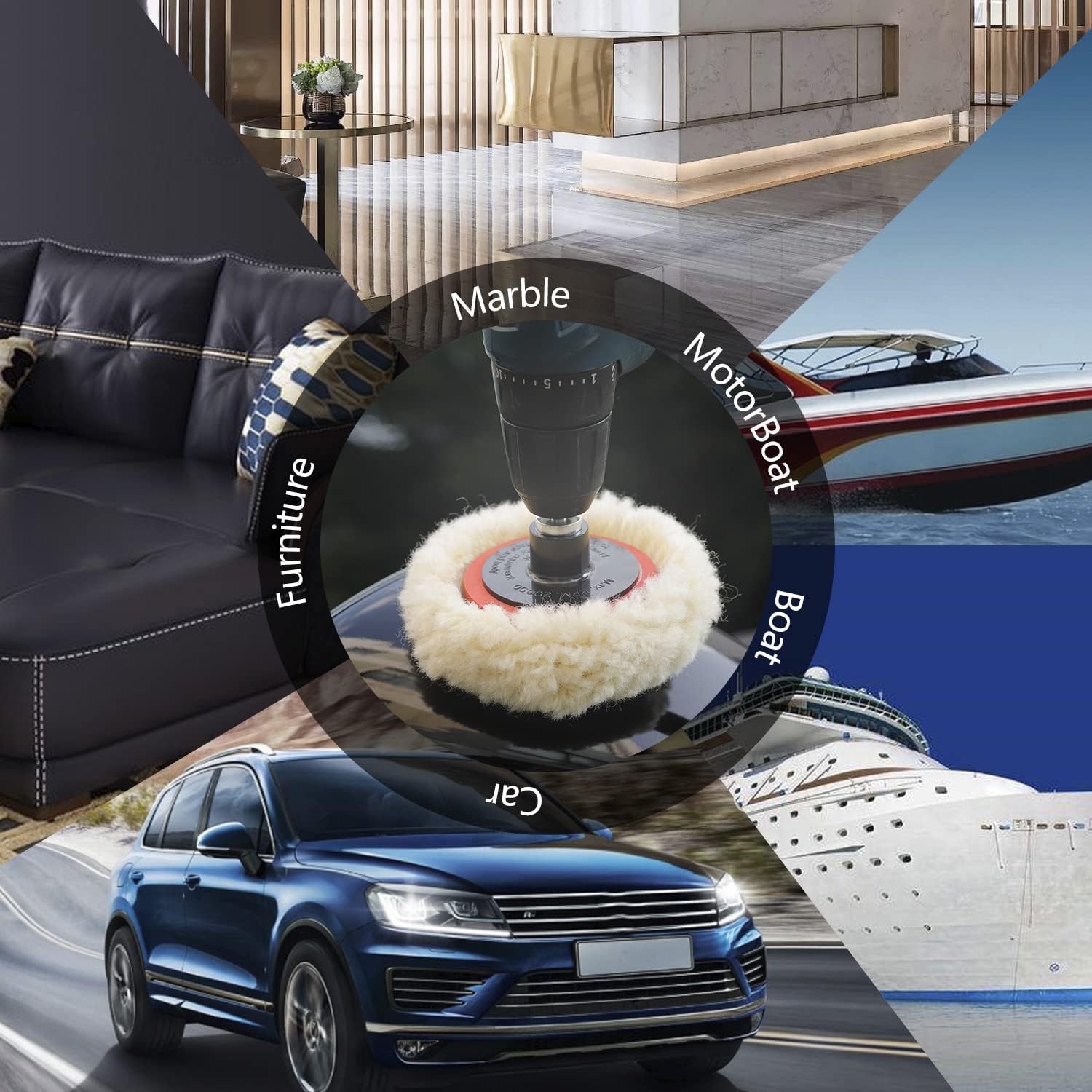 - 【High-Quality Material】Buffing wheel pads are made with 100% natural wool hook, it has elastic and pure natural materials, which is environmentally friendly and will not leave floating hair during use. The wool pad is washable, repeated use, reduce cost, economic economy.