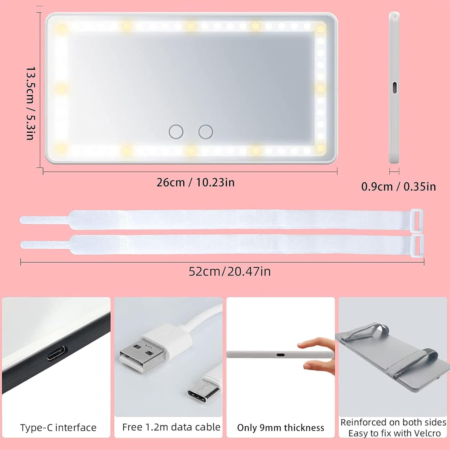 - [MEMORY FUNCTION] This car vanity mirror with lights restores to the same light color mode and brightness as when it was last used. More intimate to meet your use habits.
