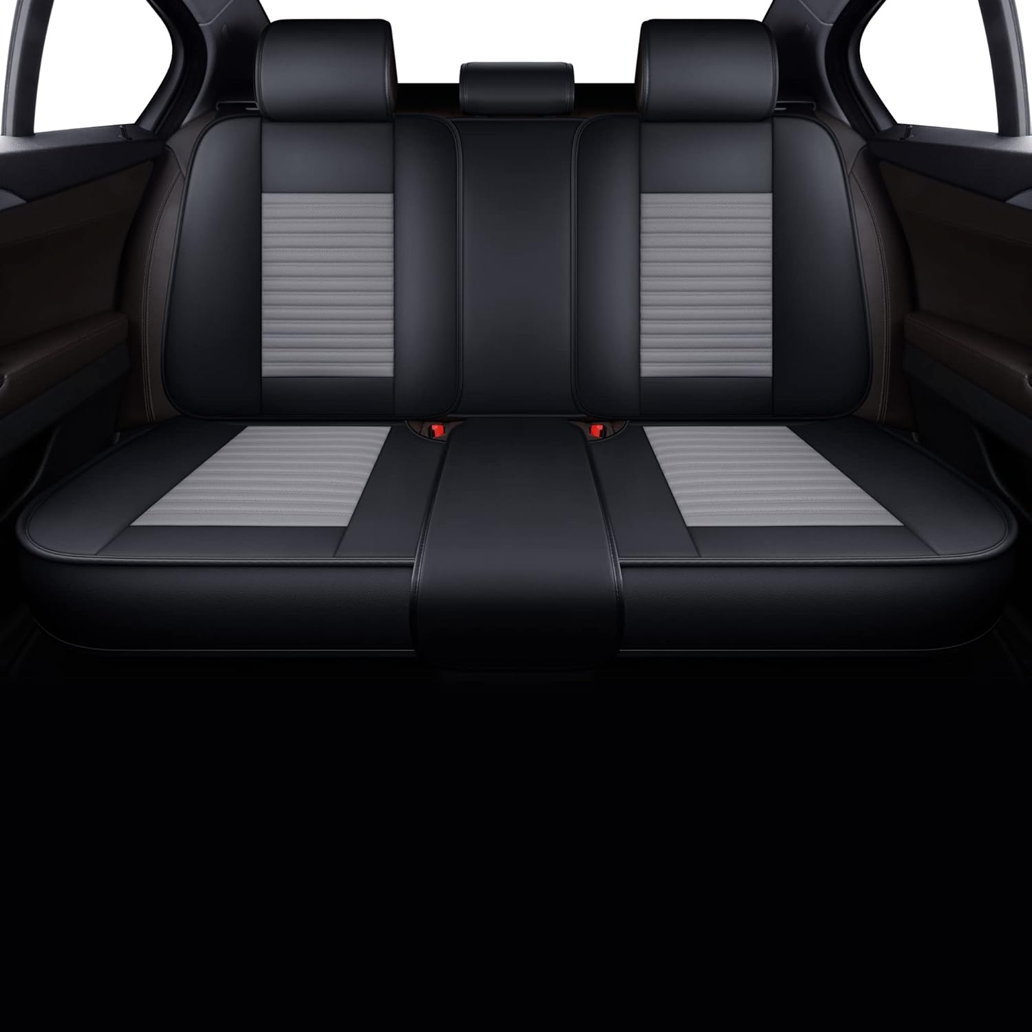 LINGVIDO Car Seat Covers, Breathable and Waterproof Faux Leather Automotive Seat Covers for Cars SUV Truck Sedan,Universal Anti-Slip Driver Seat Cover with Backrest(Rear Seat, Gray+Black)