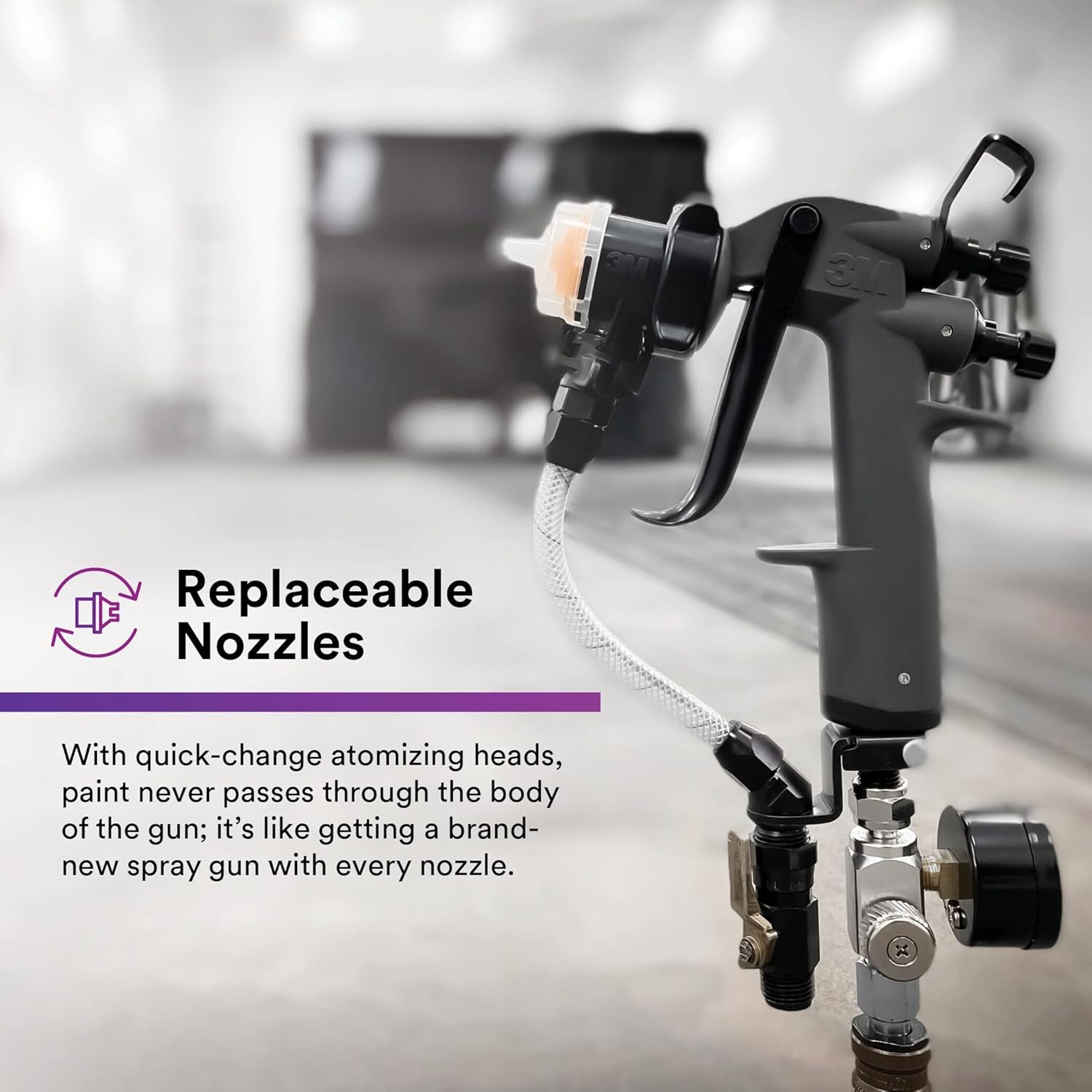 - REPLACEABLE NOZZLES: With quick-change atomizing heads, paint never passes through the body of the gun; itβs like getting a brand-new spray gun with every nozzle
