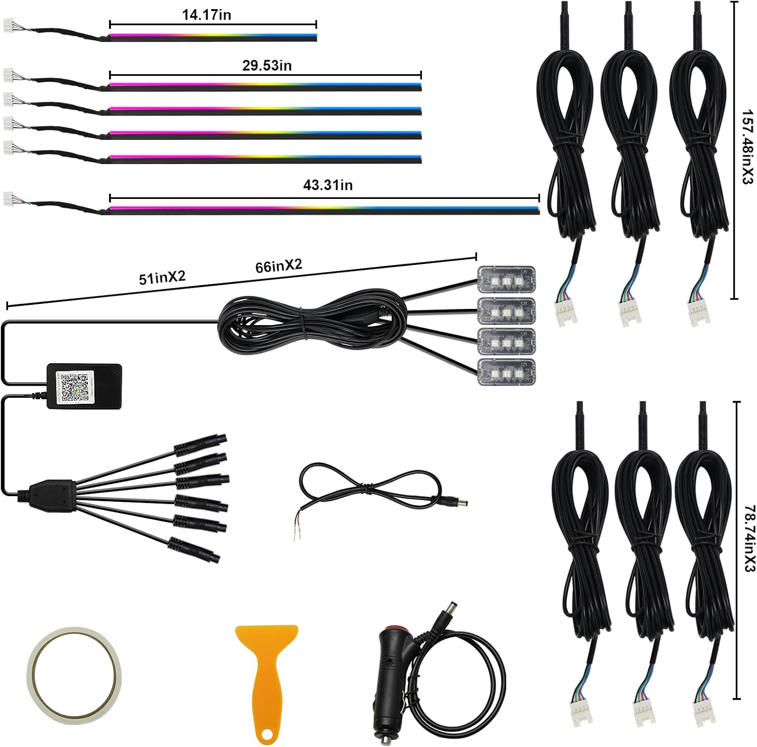 Acrylic Interior Car LED Strip Light RGB Dreamcolor 10 in1 with Wireless APP, 175 inches 593 LED 16 Million Color Fiber Optic Automotive Ambient Light Kits Music Sync Sound Activated Car Neon Lights