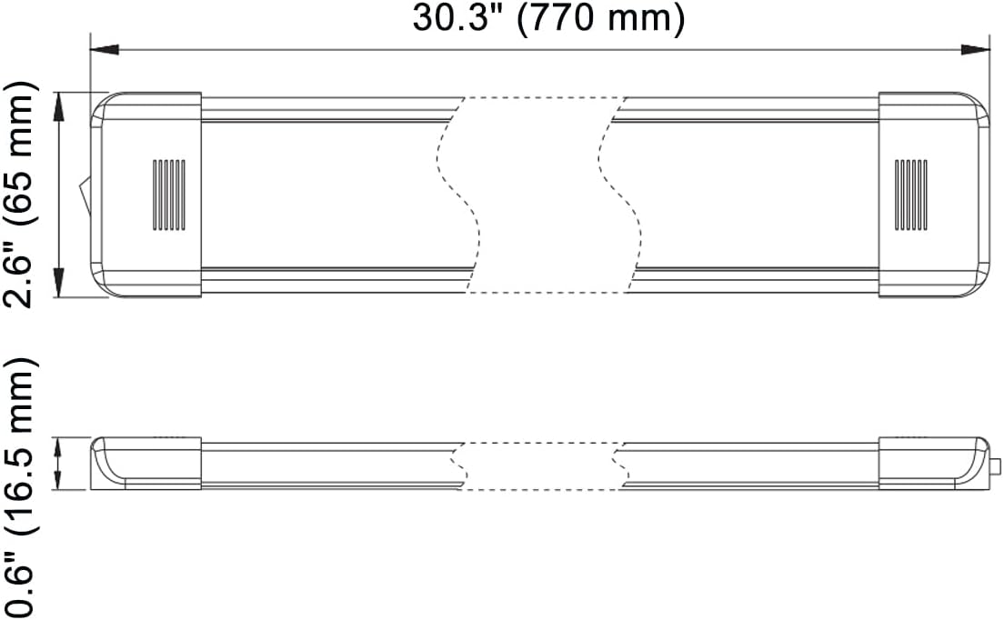 LED Interior Utility Light Fixture 30.3" x 2.6", High Lumen-Output Low Current Draw Energy Efficient, Frosted Lens 6000K Cool-White Even Diffused Beam, On/Off Rocker Switch 12V-24V DC, 1-Pack