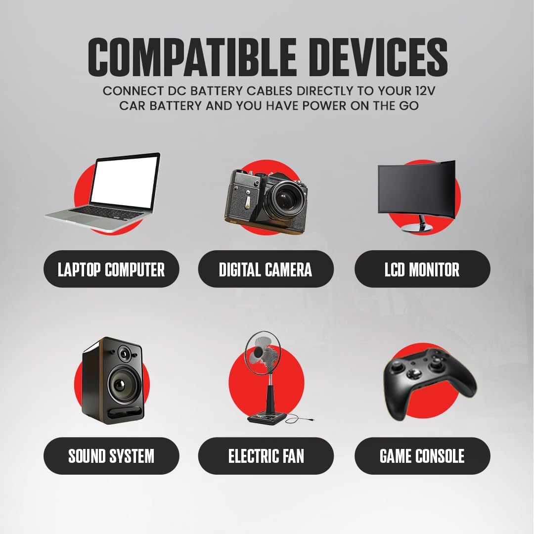- ENGINEERED TO PERFORM - Make this inverter your essential car accessories and camping accessories. Simply connect the DC battery cables directly to your 12 Volt DC battery from your car, truck, van, trailer, or RV to power your camping heater, small appliances, laptops, tablets, iPad, smartphones, gaming consoles and many other vehicle electronics.