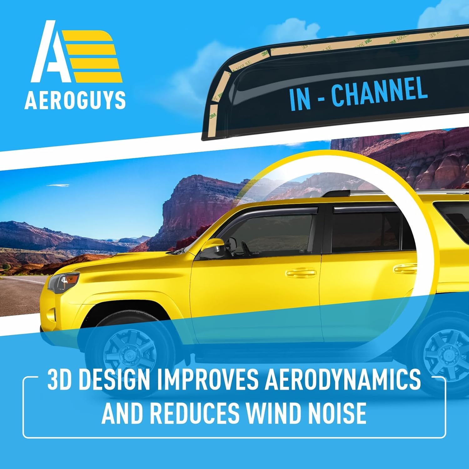 - Incredibly Durable AEROGUYS Auto Window Deflectors – They are made with strong and tough polycarbonate which is clear and scratch-resistant. They also provide UV protection making your ride more comfortable under all weather conditions.