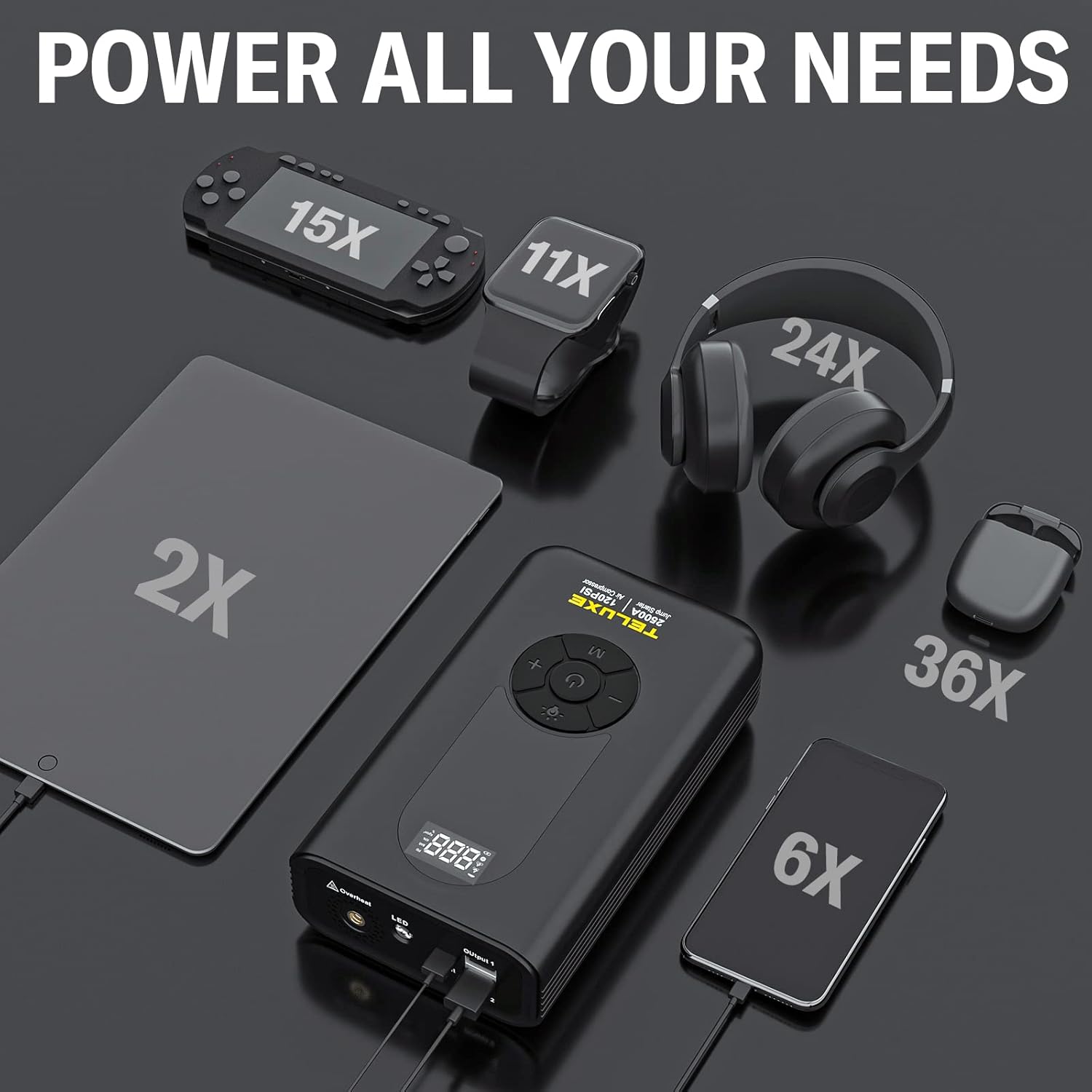 - 【HIGH PERFORMANCE BATTERY STARTER】The TE01 Jump Starter 2500A peak current can instantly start any 12V vehicle (8.5L gasoline or 6L diesel engine) up to 50 times. Not only the battery capacity of 66.6Wh can meet daily needs, but also the use of more efficient smart chips allows the life of the TE01 car battery jump starter to exceed 1000+ charge cycles.