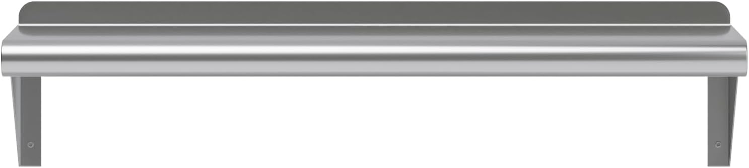- 8 in. x 30 in. Stainless Steel Wall Shelf with 6 in. High Mounting Brackets. This heavy-duty multifunctional stainless wall shelf is made with 18 gauge stainless steel and can hold up to 170 Lbs of weight. The design features a 1 in. backsplash and bullnose edge. It's made with durable welded corners and support brackets.