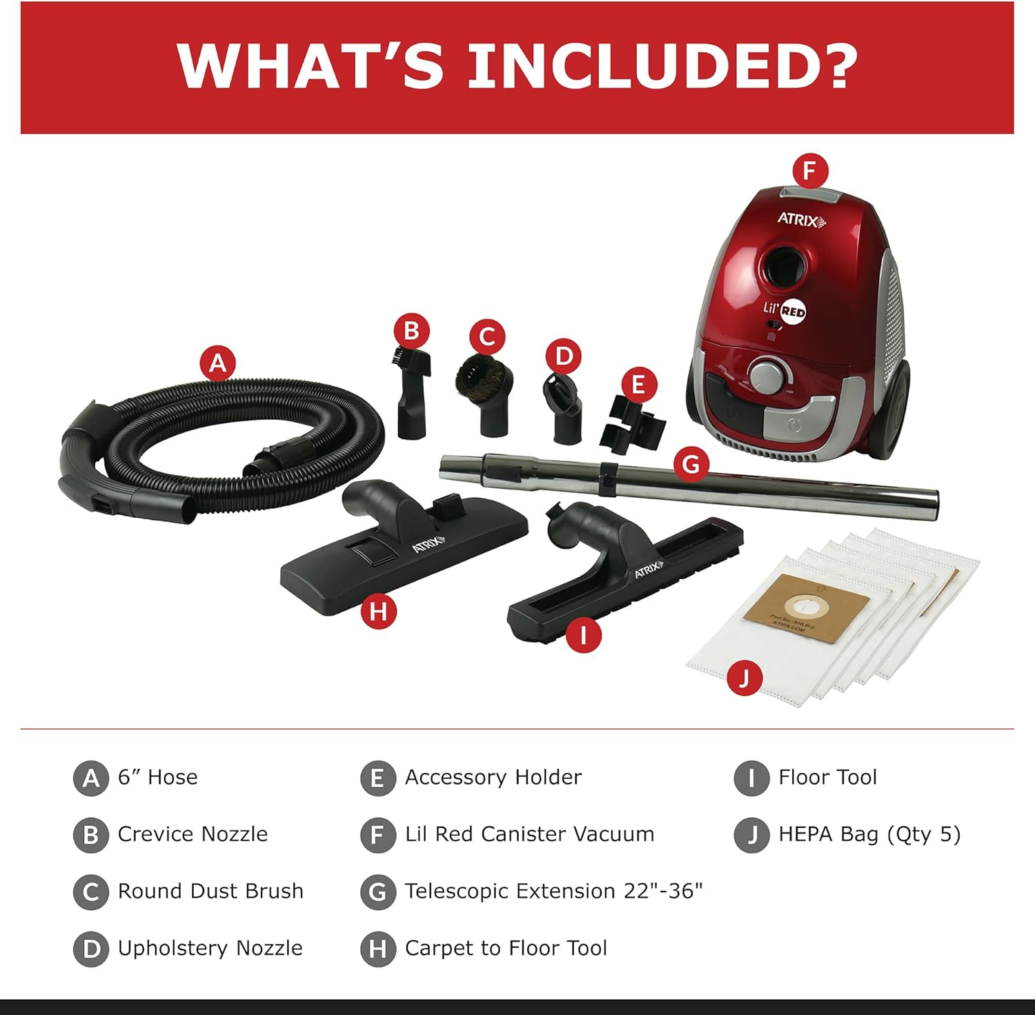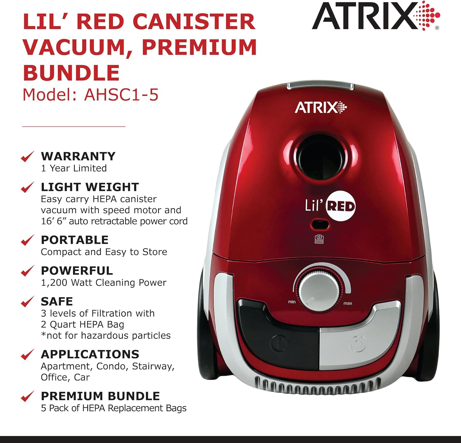 Atrix Red Lil Portable Canister Vacuum Cleaner with 2-Quart HEPA Filter & Variable Speed Motor – Premium Bundle for Home & Carpet Cleaning, Includes Accessories