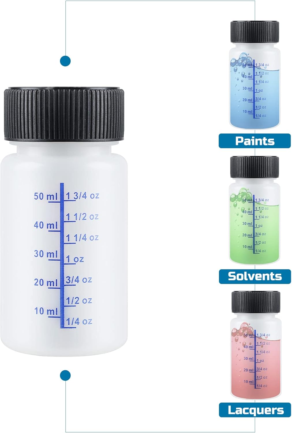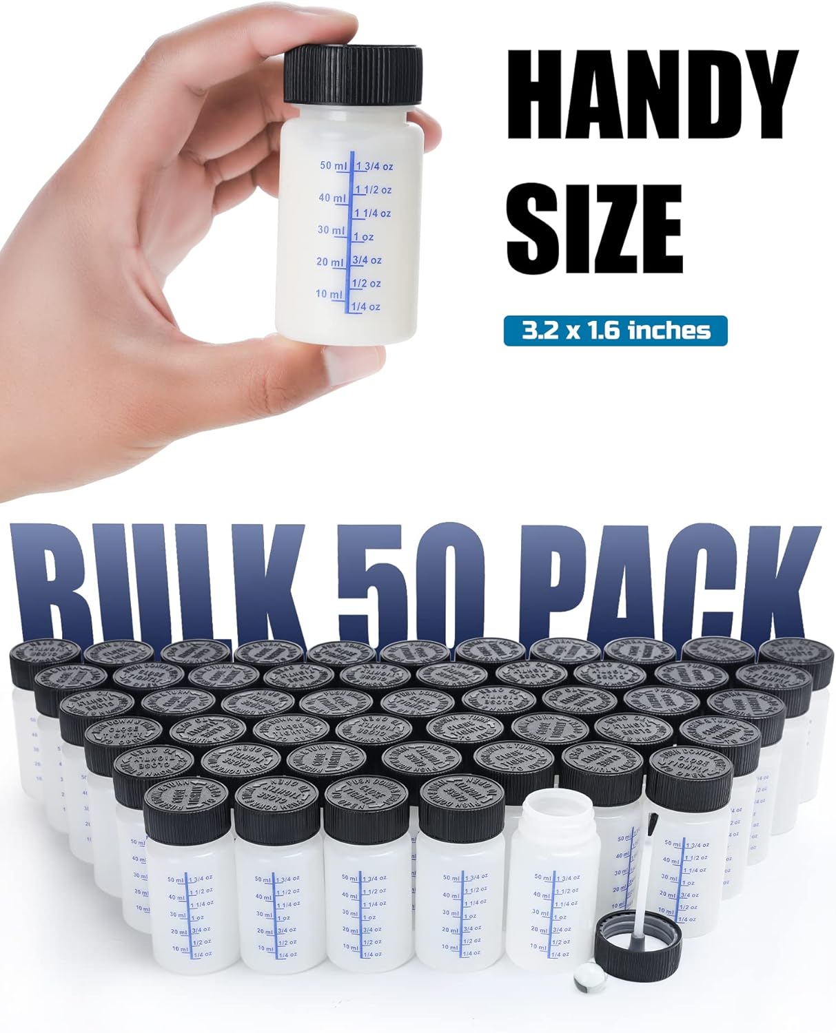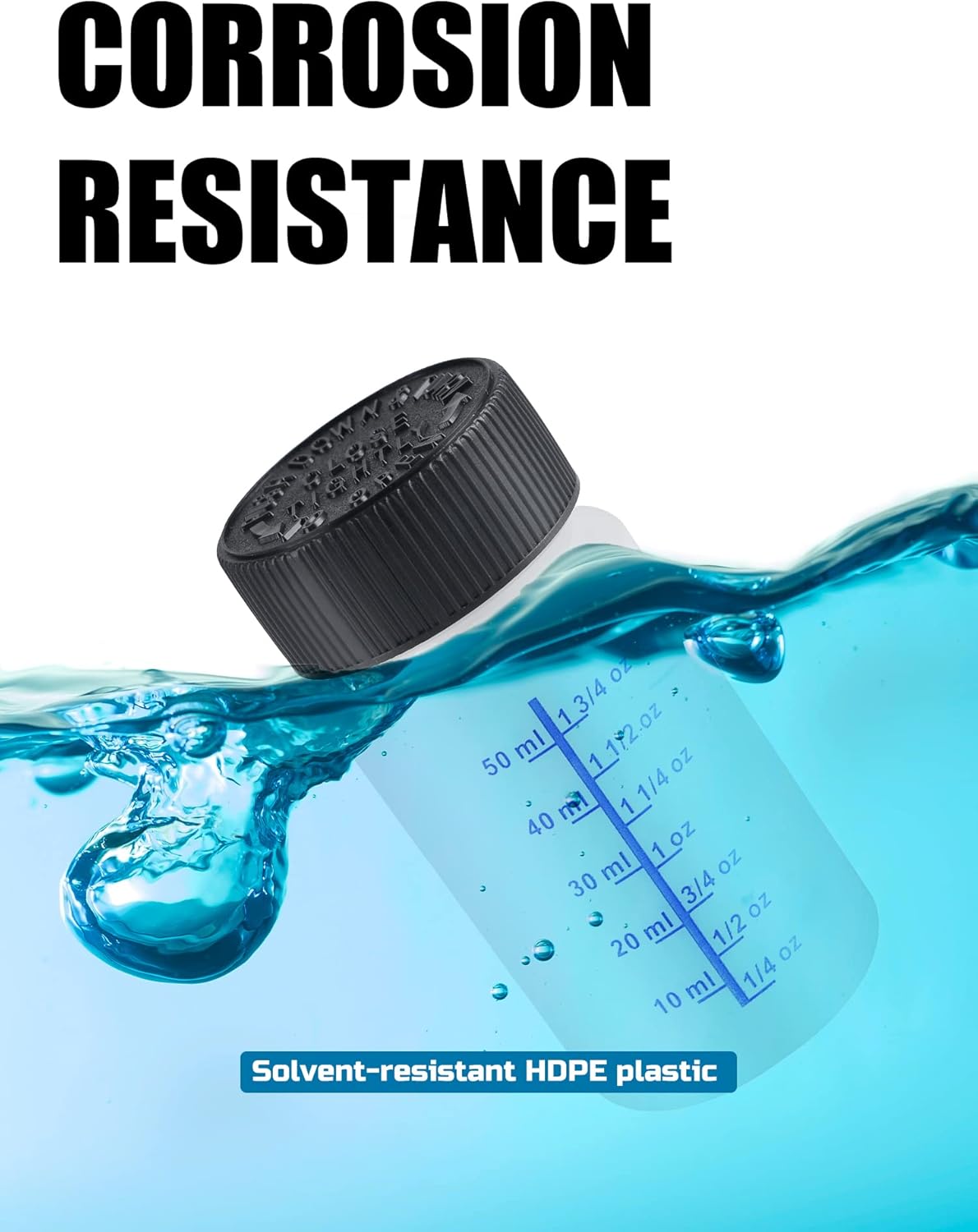 • Durable Material: The set contains 50 bottles made of solvent-resistant HDPE plastic material, which is highly resistant to corrosion. The threaded ring layer inside the cap is made of flexible plastic, which is well sealed and will not loosen