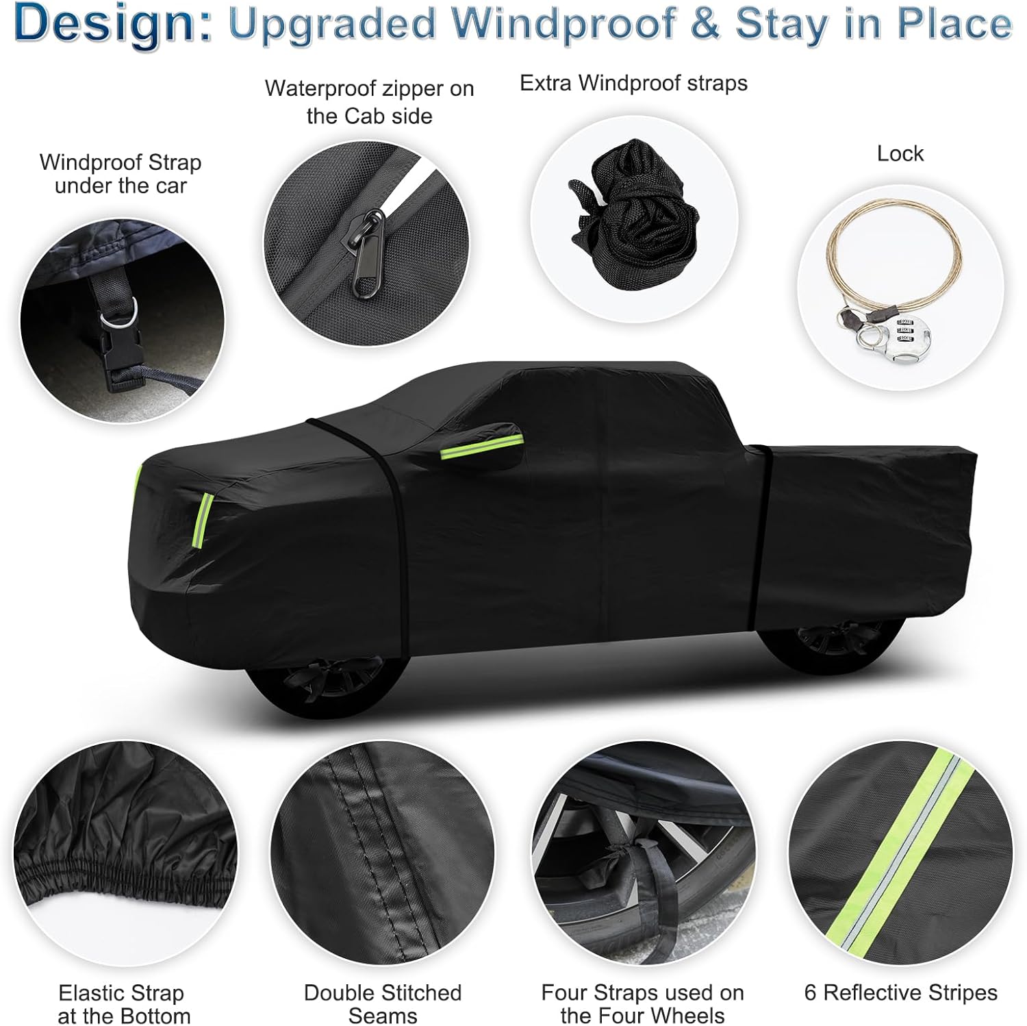 - 【 Superior Material of Car Cover】This pickup car cover is made of 420D oxford cloth and PU waterproof coating. Light Shell Breathable Cover,100% waterproof! Very soft material that will not cause damage to your car!