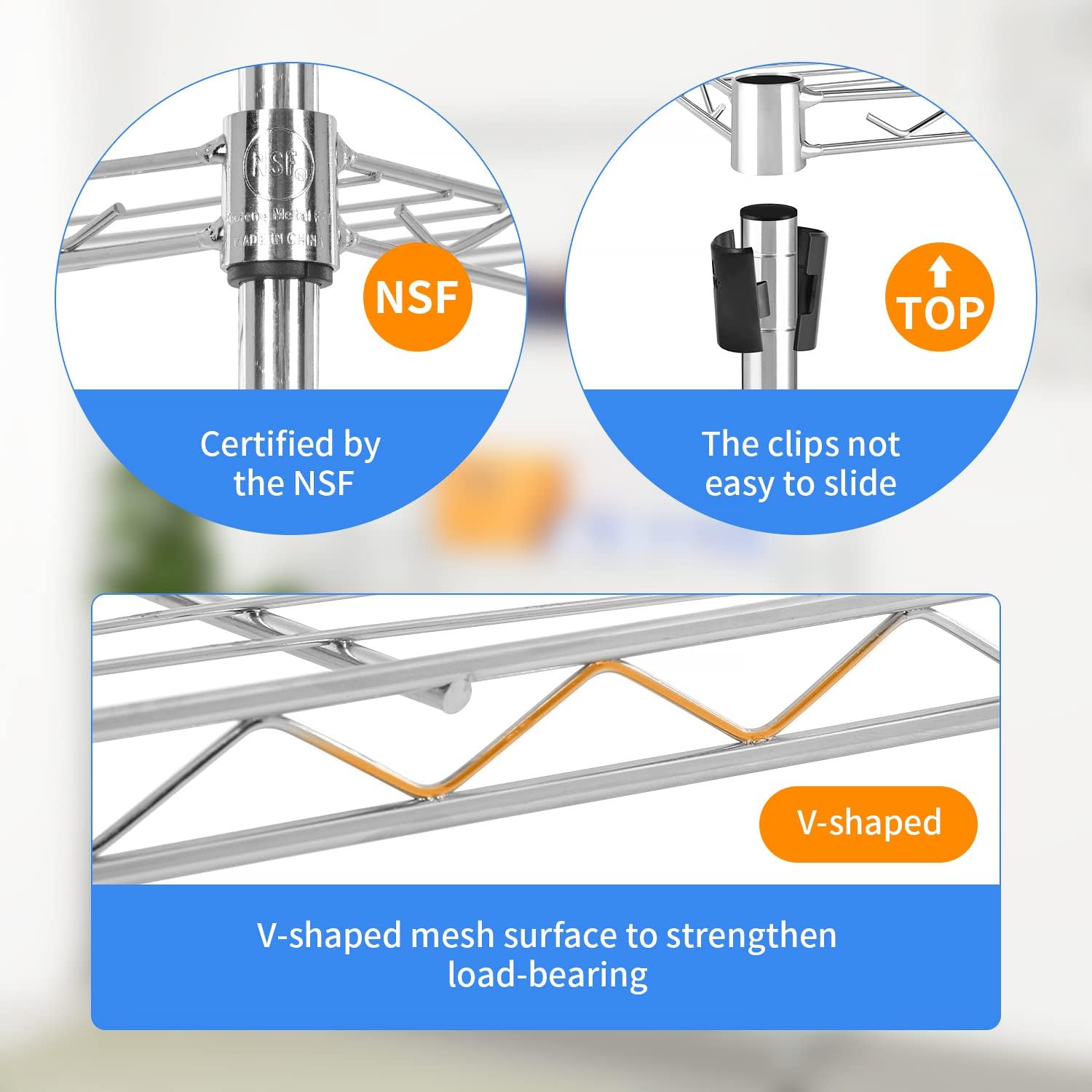 - √【EASY TO ASSEMBLE】:The wire shelving unit is easy to assemble, You only need to spend 15 minutes to install it. This storage shelves structure is very simple ,No tools required to assemble it.The metal shelf is simple to assemble, all parts packaged for idiots.wire shelving unit storage shelves metal shelf.